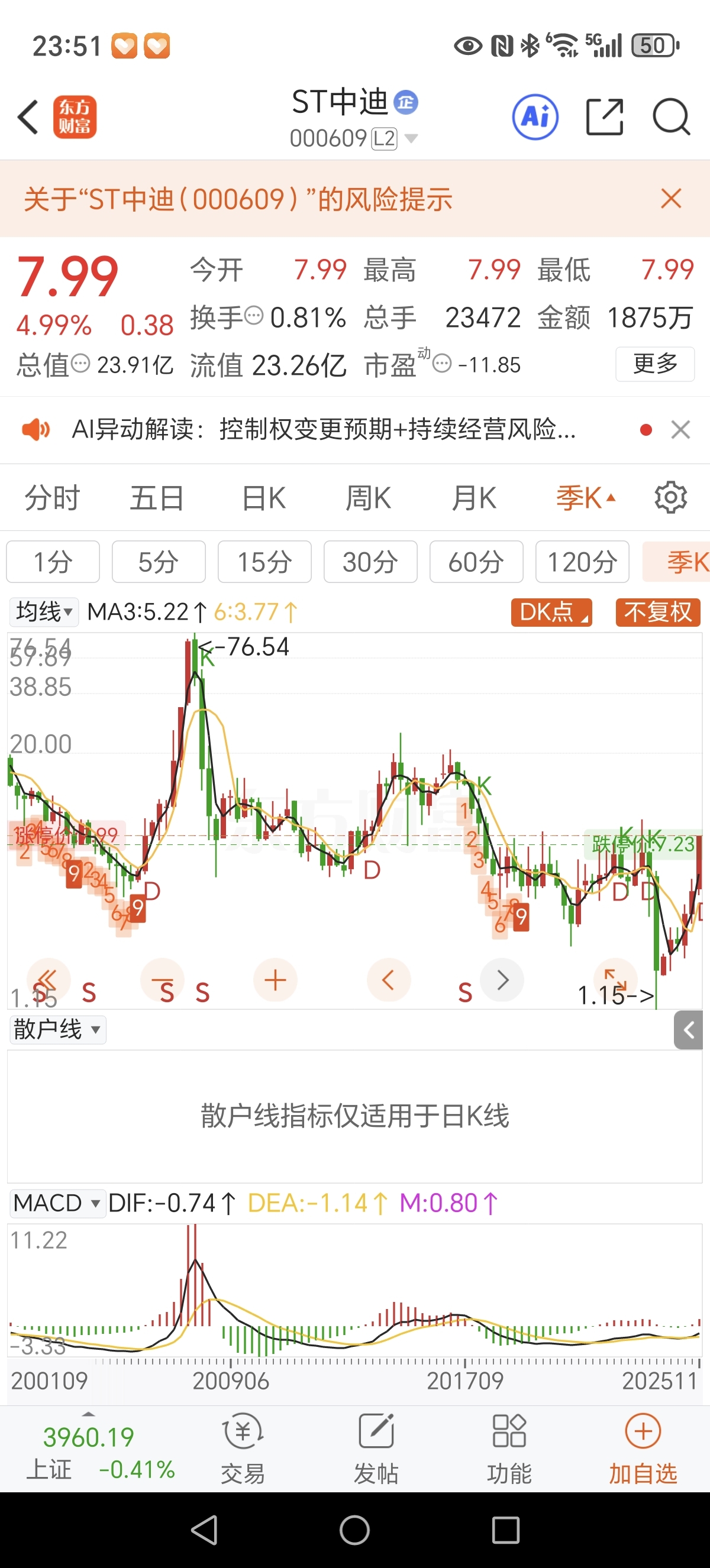 $ST中迪(SZ000609)$ 眼睛有没有问题