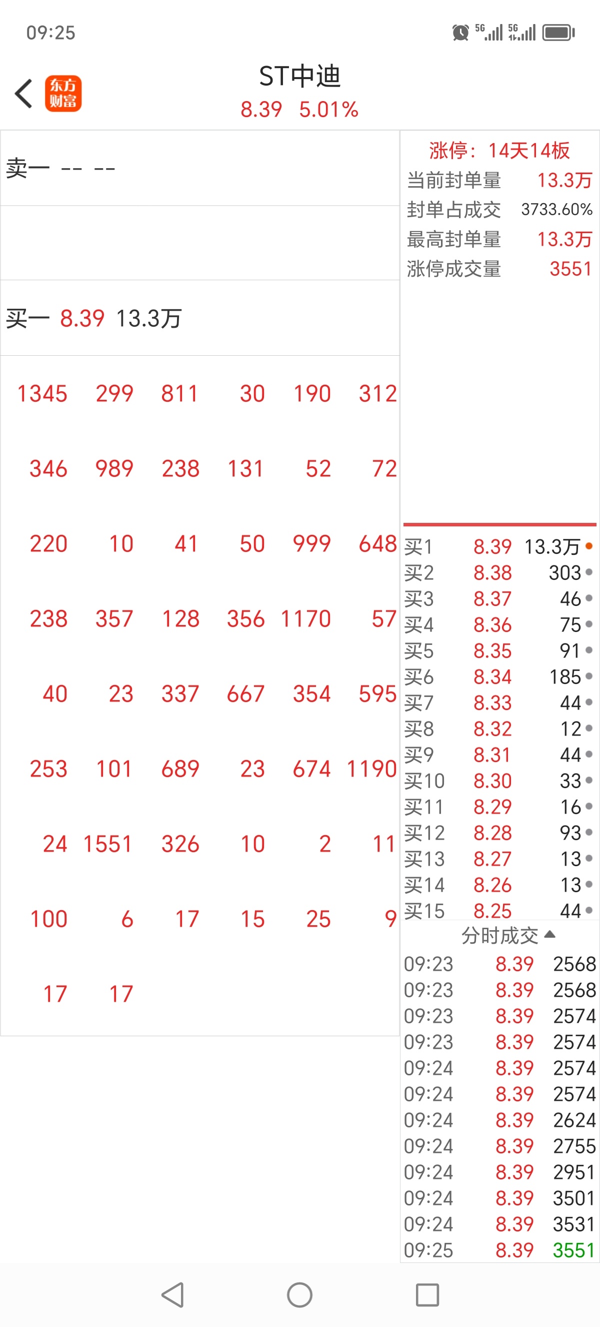 $ST中迪(SZ000609)$ 兄弟们排好队,大家有序进入,今天不会有超过2400手的买单(不懂规则的除外),别想着一口吃个大胖子,也别想着耍小聪明拆成小单分批吃进,老老实实排队等候即可。——来自一个过来人的忠告。