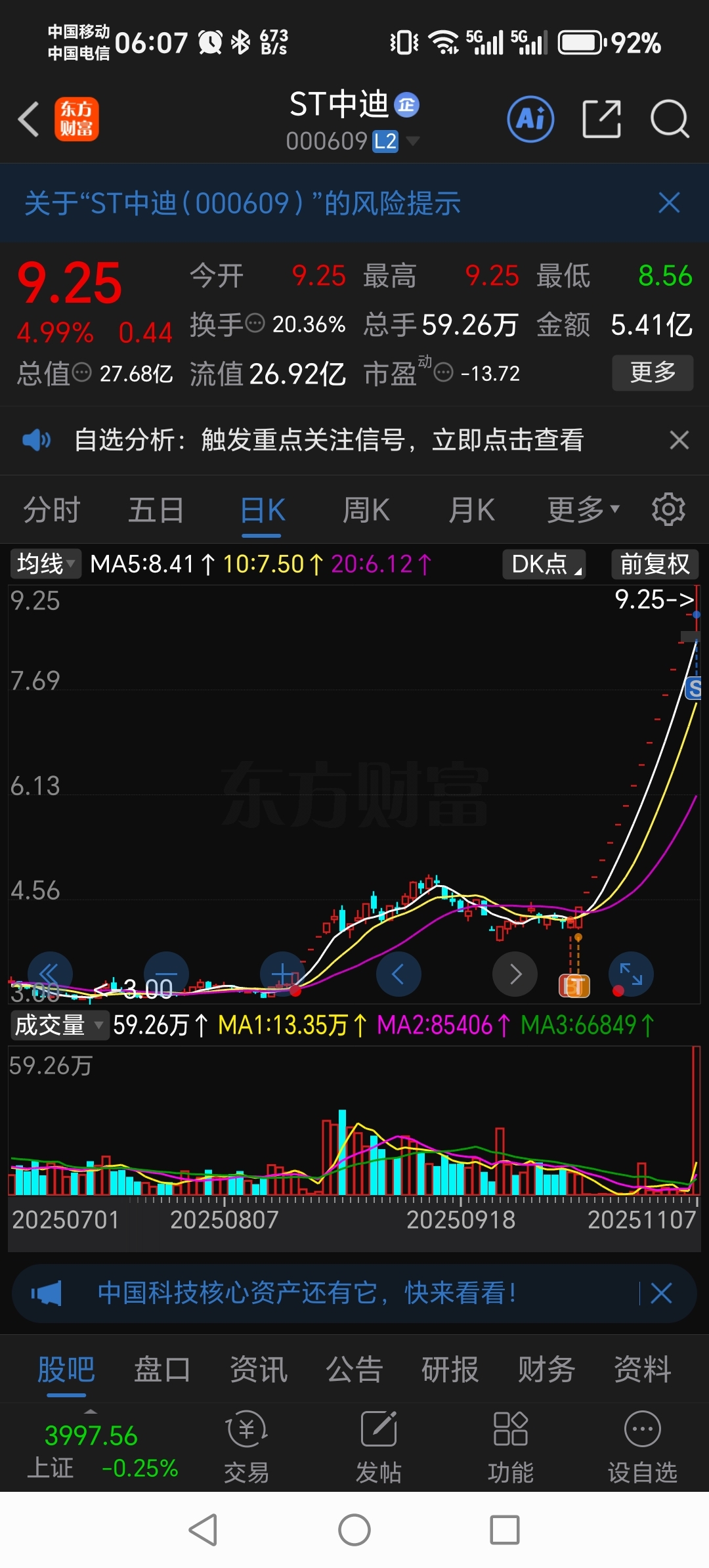 $ST中迪(SZ000609)$ 跑了,不知道对错