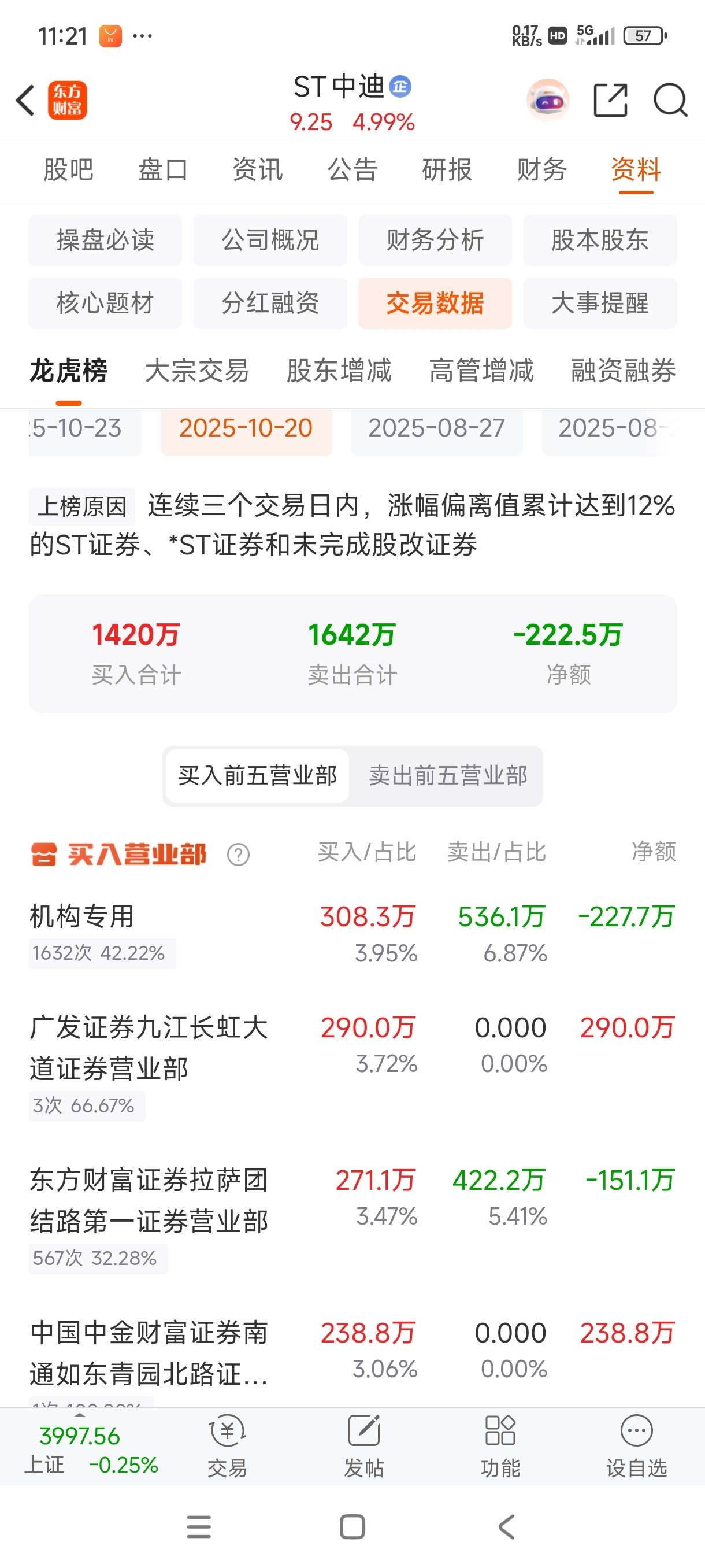10月20日(16/17/20这3天)的龙虎榜买入前5名都不在11月7日的龙虎榜