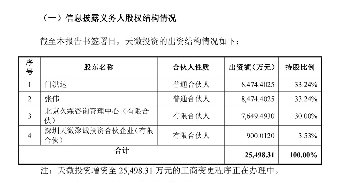 天微投资已增资至2.5个亿,不再是5000万了,股东增加两个,说明背后有大资金进
