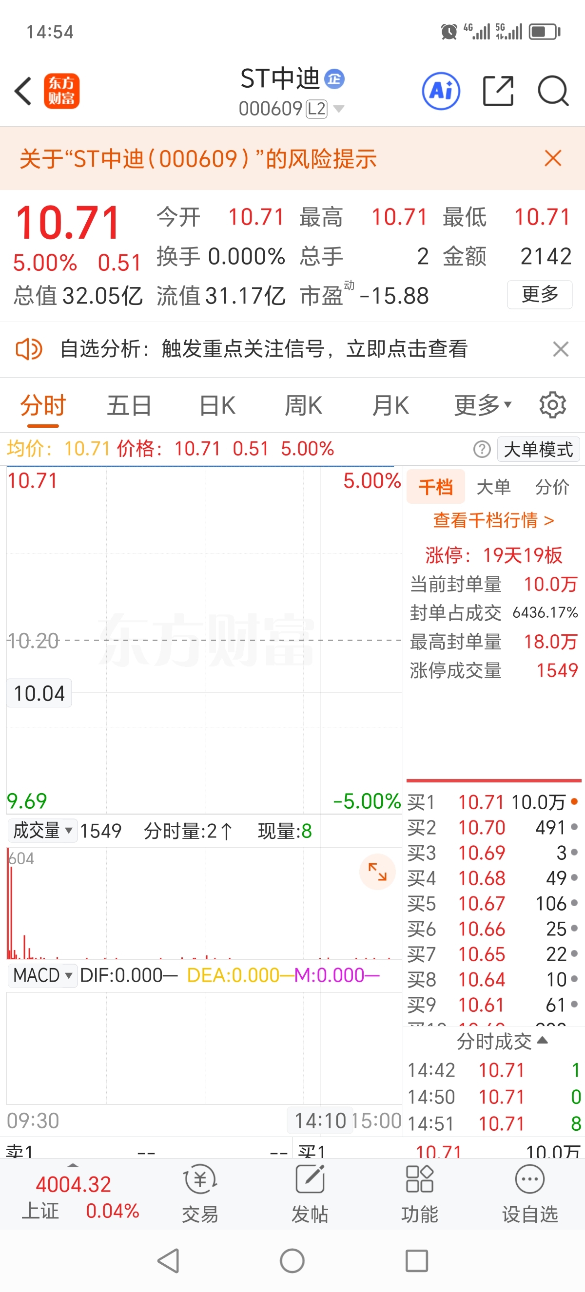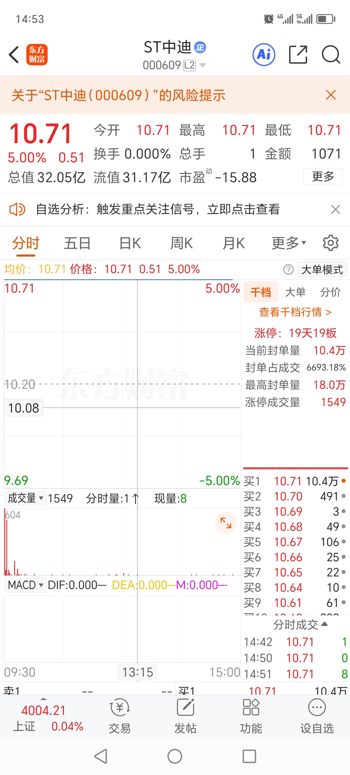 迪王不愧是迪王啊,惜售程度堪称核准制刚上市的新股,盘中居然近1个小时无成交!这差