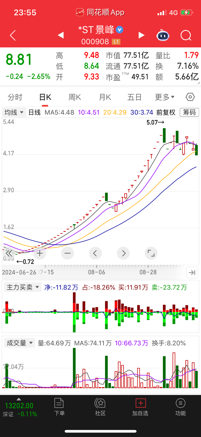 $ST中迪(SZ000609)$ 去年景峰大帝从0.72一波涨到5.07,并没有A杀,现在9块钱