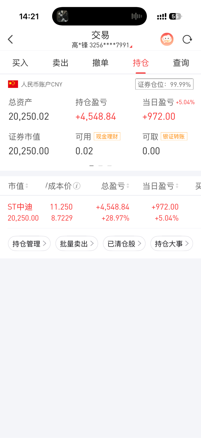 $ST中迪(SZ000609)$ 明天开始要做一天一千块的男人