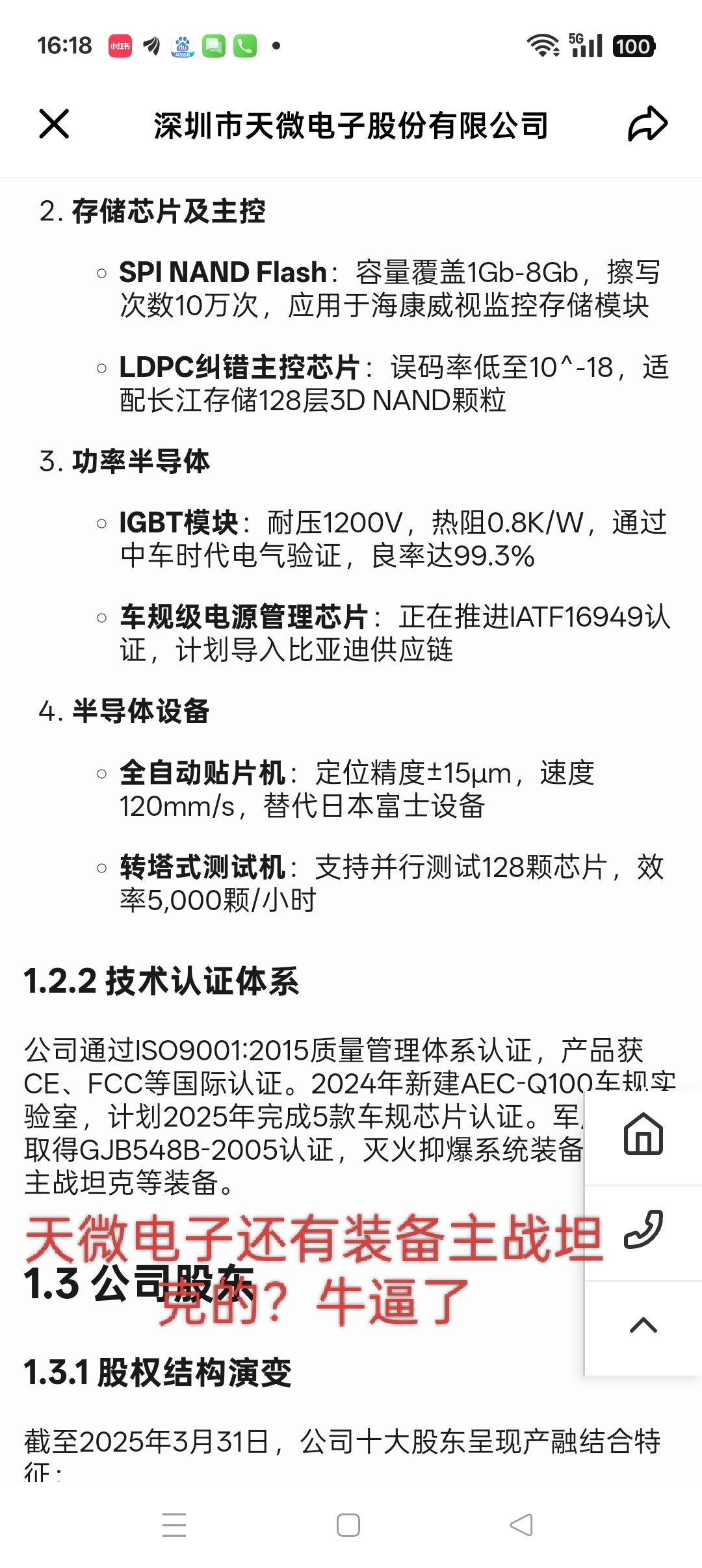 $ST中迪(SZ000609)$ 这是吧里一位股友发出来的,真是挺仔细,我一看才知道,原来天微电子产品竟然还在主战坦克有应用,也就是说居然还有军工概念!!!