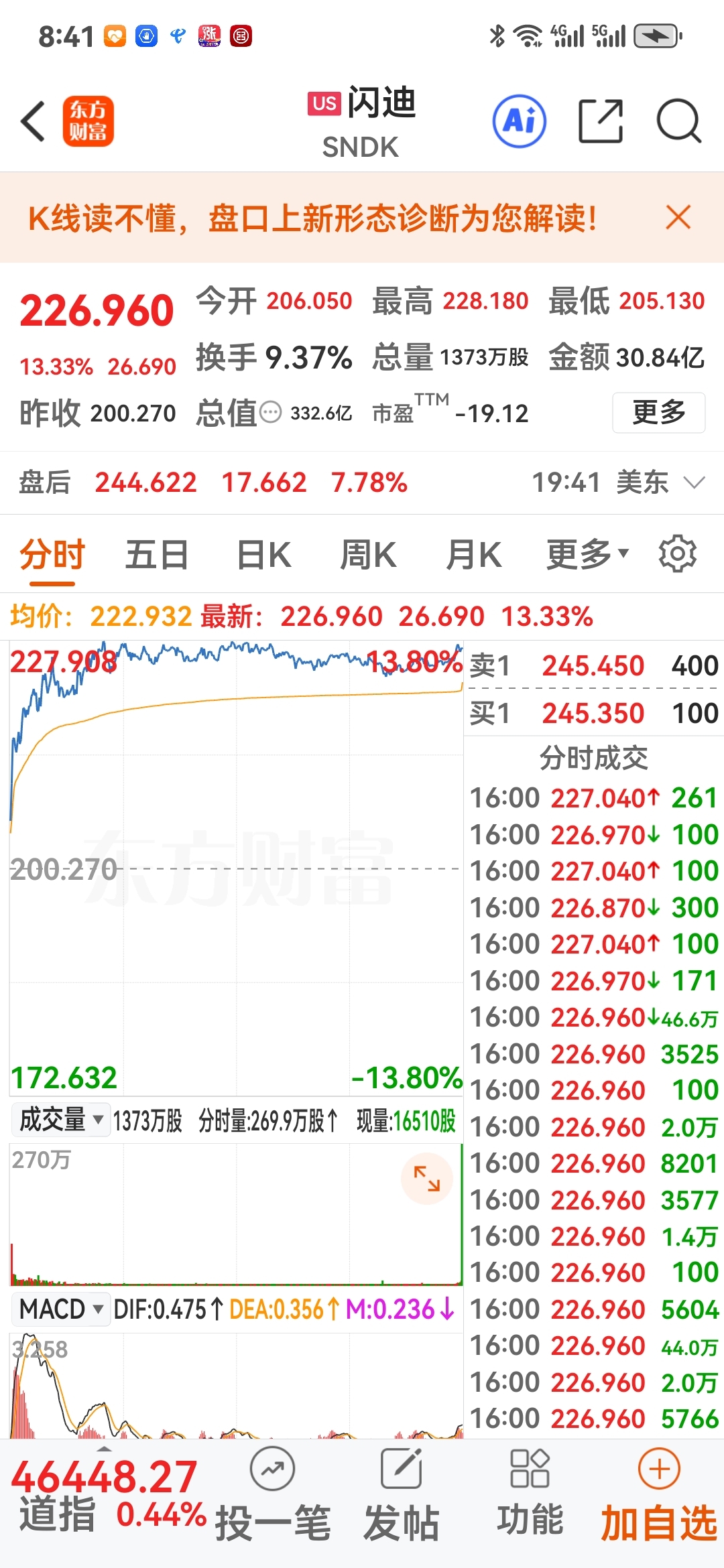 欣赏闪迪股价与涨幅,中迪无敌