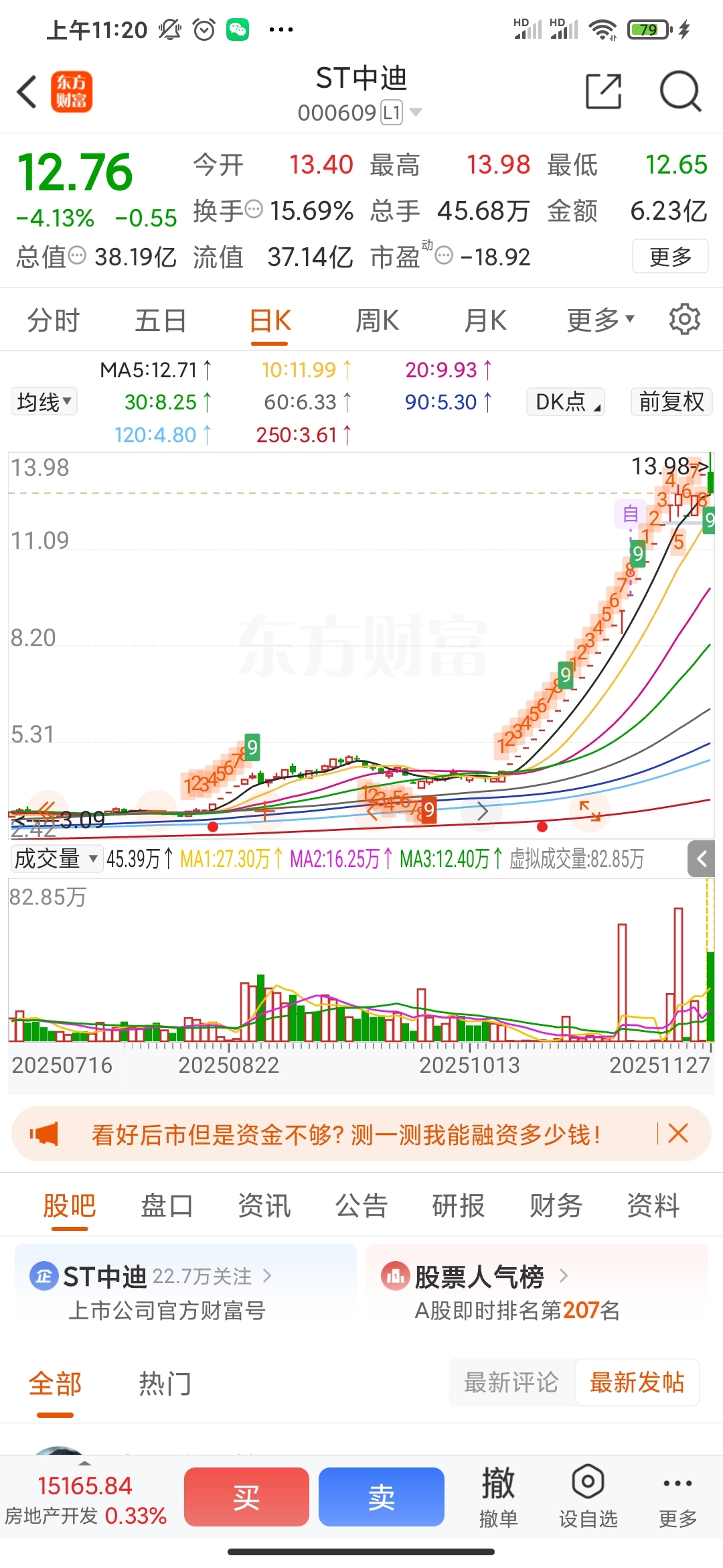 $ST中迪(SZ000609)$ 筑底盘整拉升派发用去一年半时间,其实拉升时间用的最短