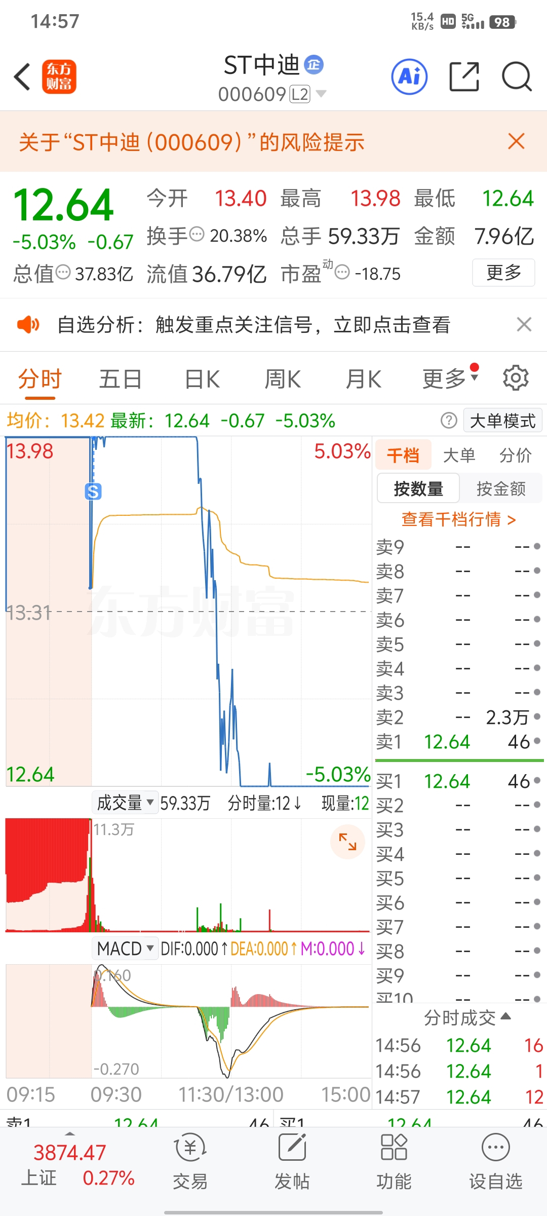 $ST中迪(SZ000609)$ 你在他乡还好吗