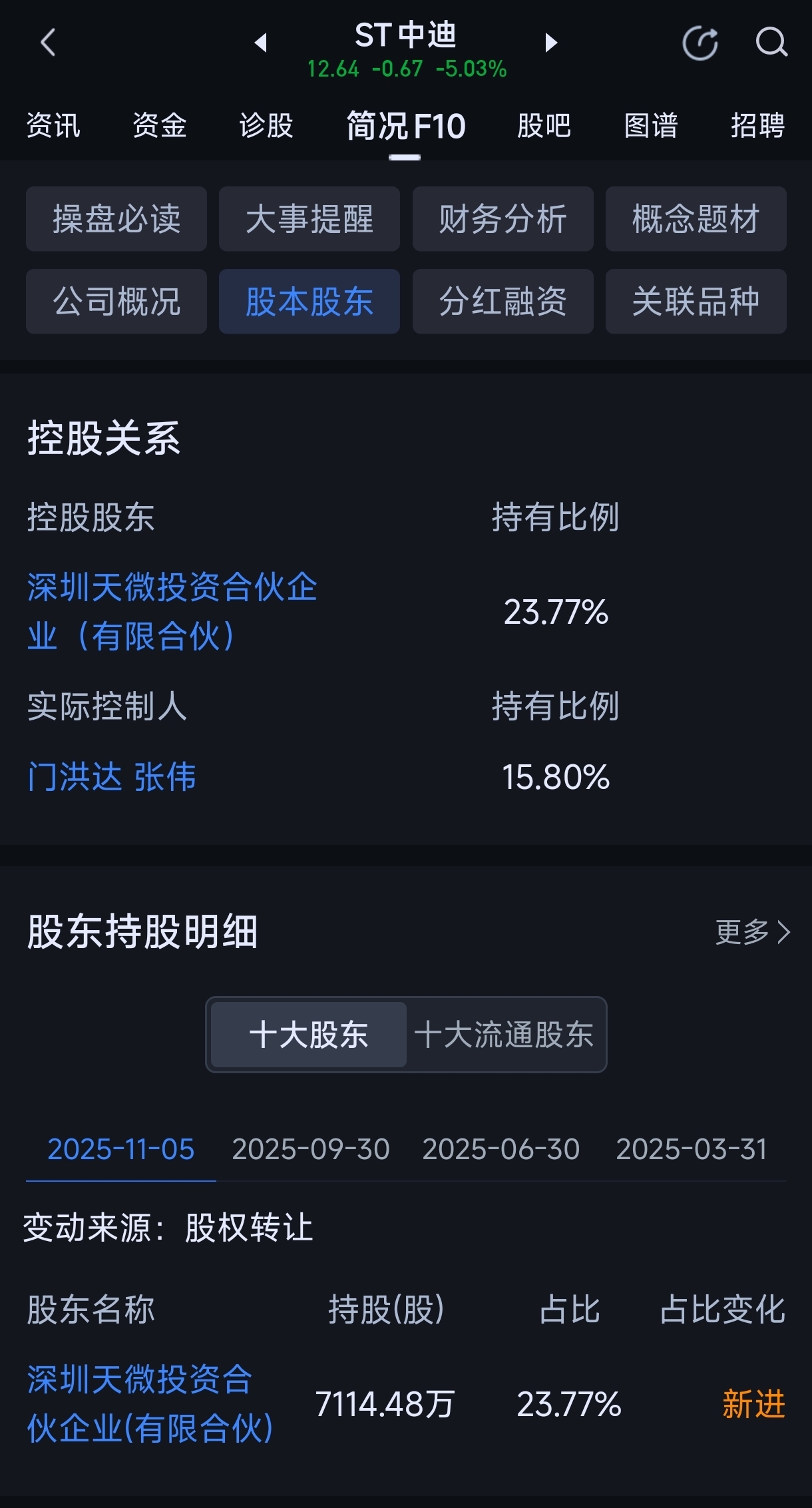 深圳天微投资合伙企业,现在正是入驻ST中迪,已经往好的方向发展,趋势还在
