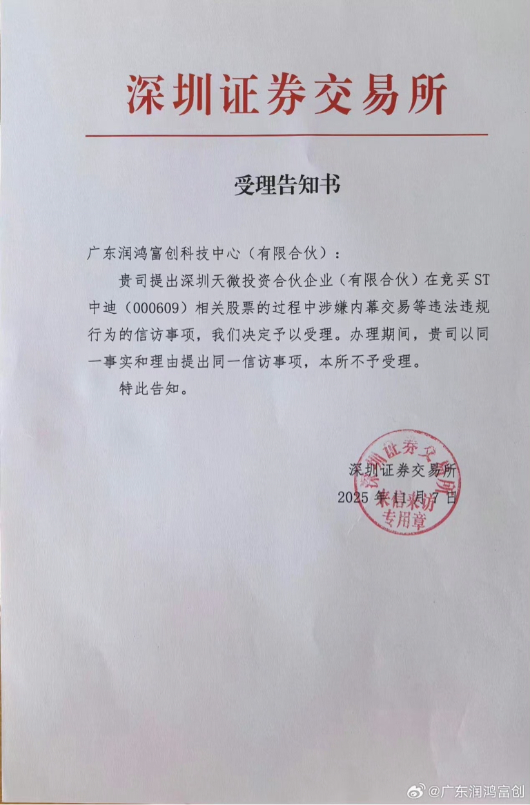 $ST中迪(SZ000609)$ 原大股东在微博上发的这个举报现在是什么情况?有没有人知道?