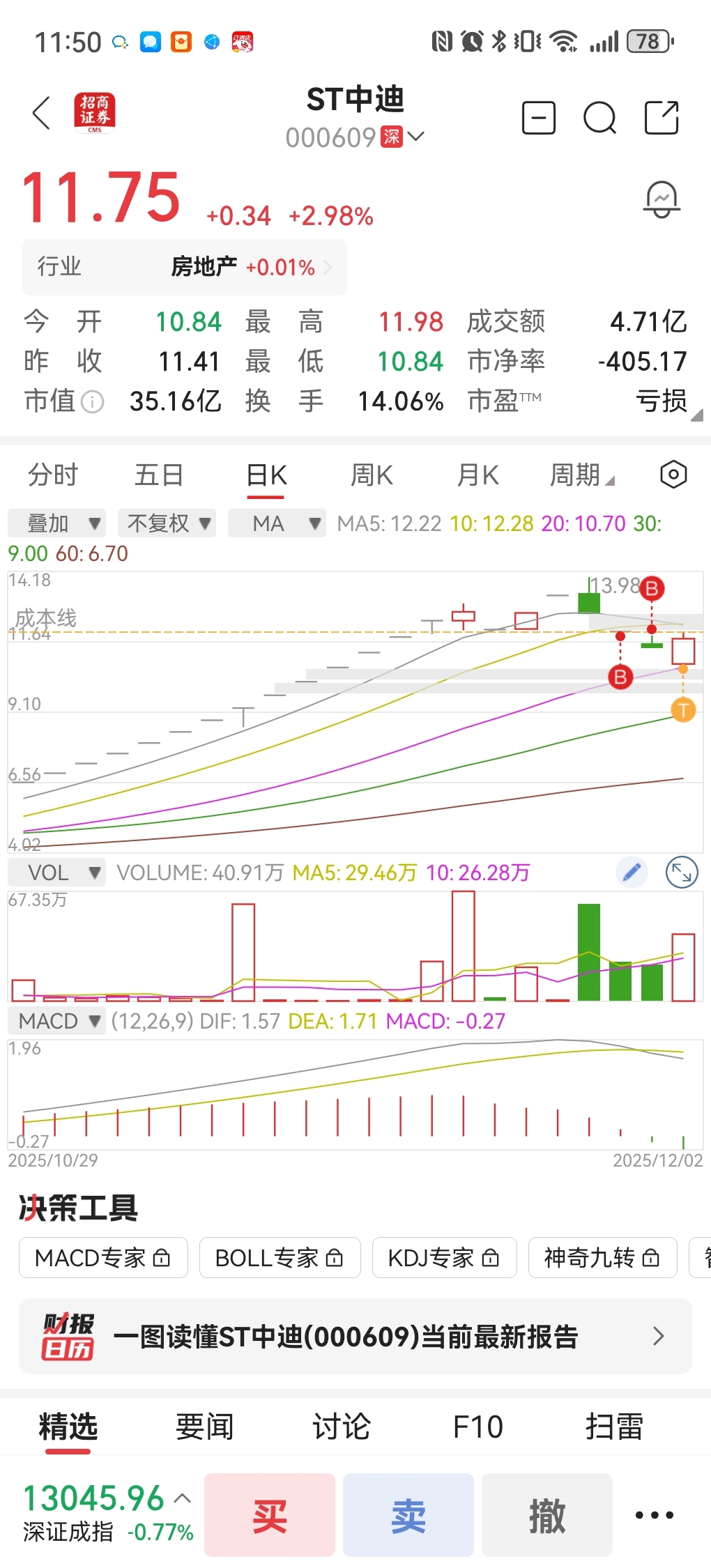 $ST中迪(SZ000609)$ 中迪易主,半导体资产注入预期还在就坚守底仓。感谢市场先生恐慌给的廉价(相对于以后还在半山腰)筹码!