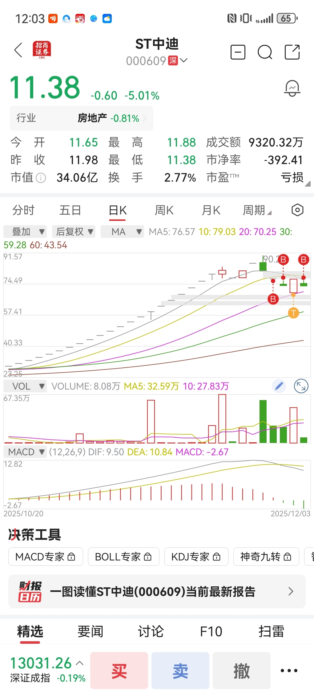 $ST中迪(SZ000609)$ 只要干不死,就往死里干!昨天板上出的今天买回来再次满仓