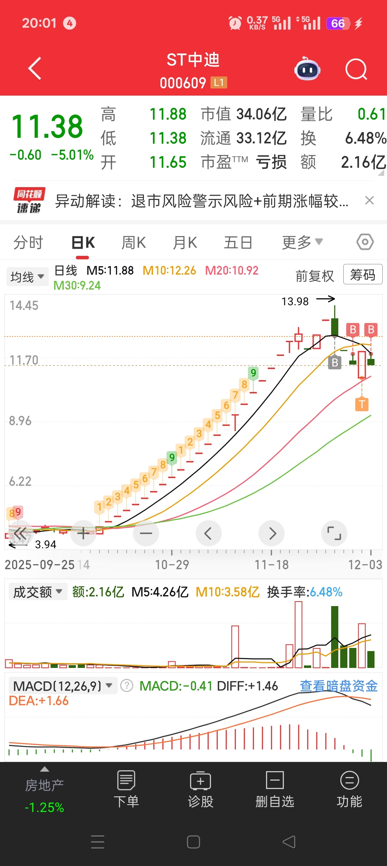 $ST中迪(SZ000609)$ 想揍自己,今天又买了