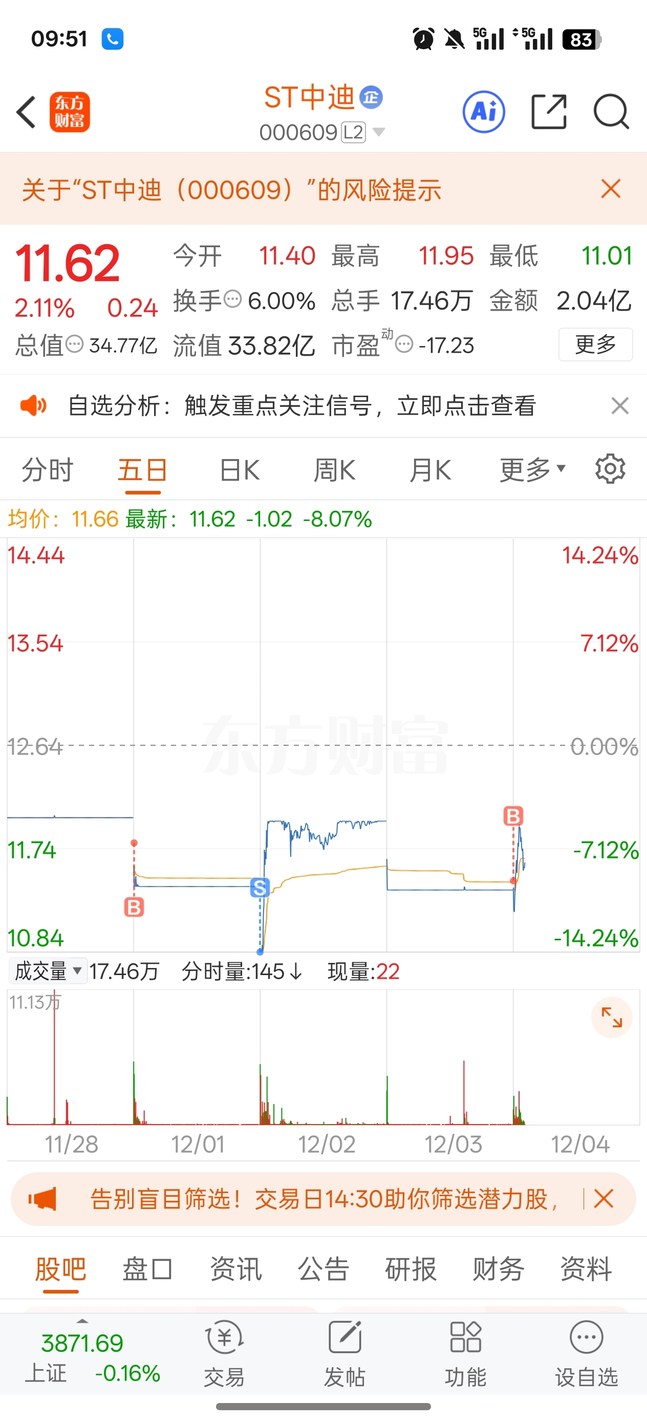 $ST中迪(SZ000609)$ 本月st中迪让我亏了-8,好吓人,st东易回血+11。