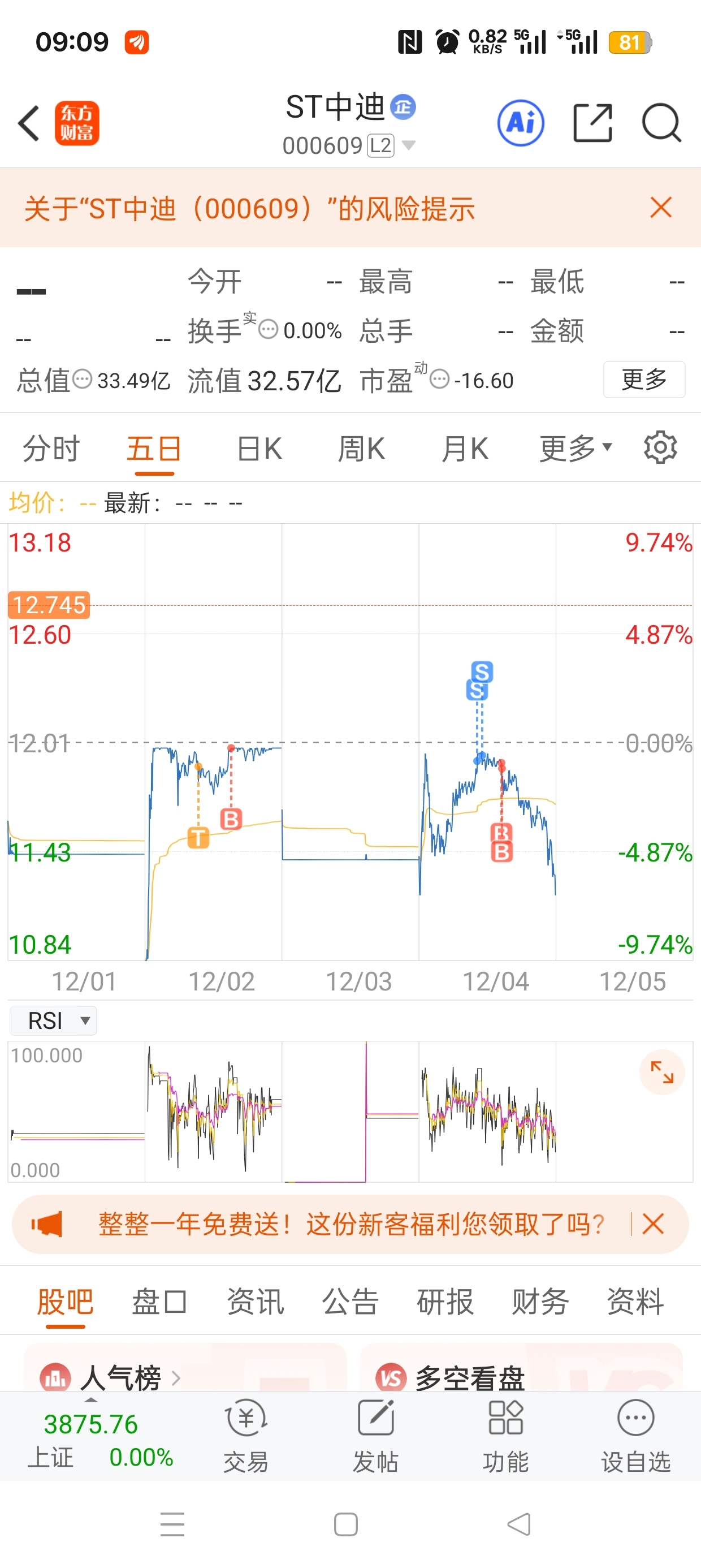 $ST中迪(SZ000609)$ 拜拜了你,玩得我心累,今年赚的钱全亏这里了