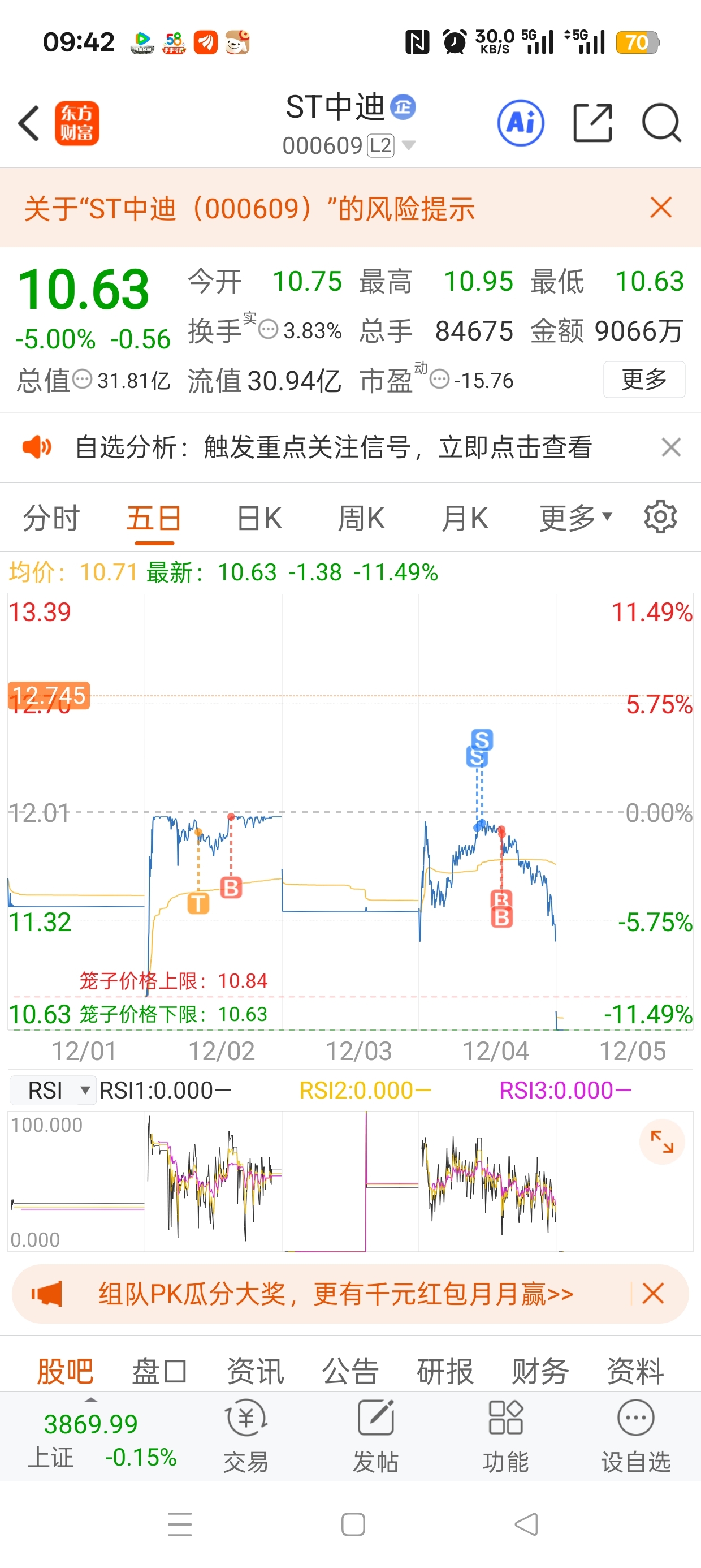 $ST中迪(SZ000609)$ 以前没玩过st,被st的大佬发文蒙蔽了双眼,给今年收益的六万多点全送中迪了