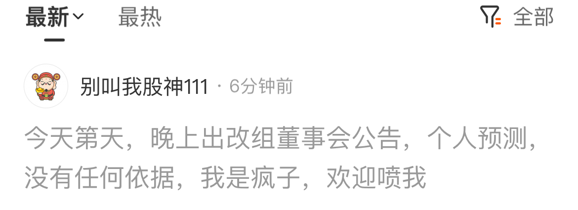 温馨提示: 1.根据《证券法》规定,禁止编造、传播虚假信息或者误导性信息,扰乱证券市场;2.用户在本社区发表的所有资料、言论等仅代表个人观点,与本网站立场无关,不对您构成任何投资建议。用户应基于自己的独立判断,自行决定证券投资并承担相应风险。《东方财富社区管理规定》