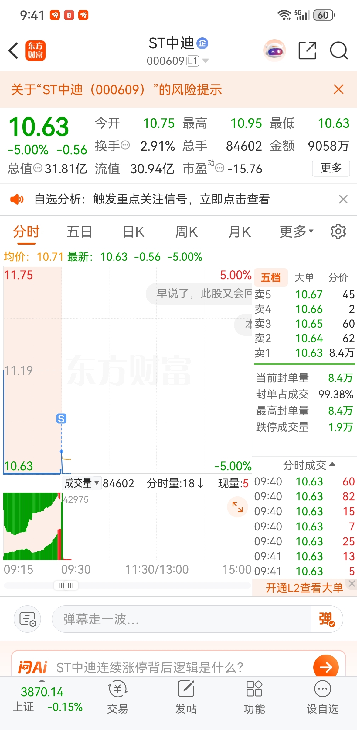 $ST中迪(SZ000609)$ 今个有跑的吗?