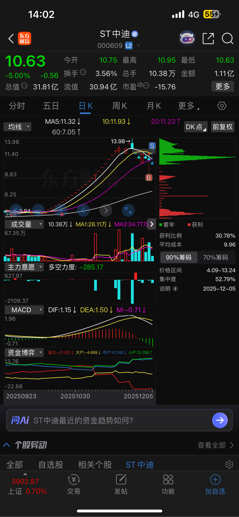 $ST中迪(SZ000609)$ 垃圾st再也不玩了