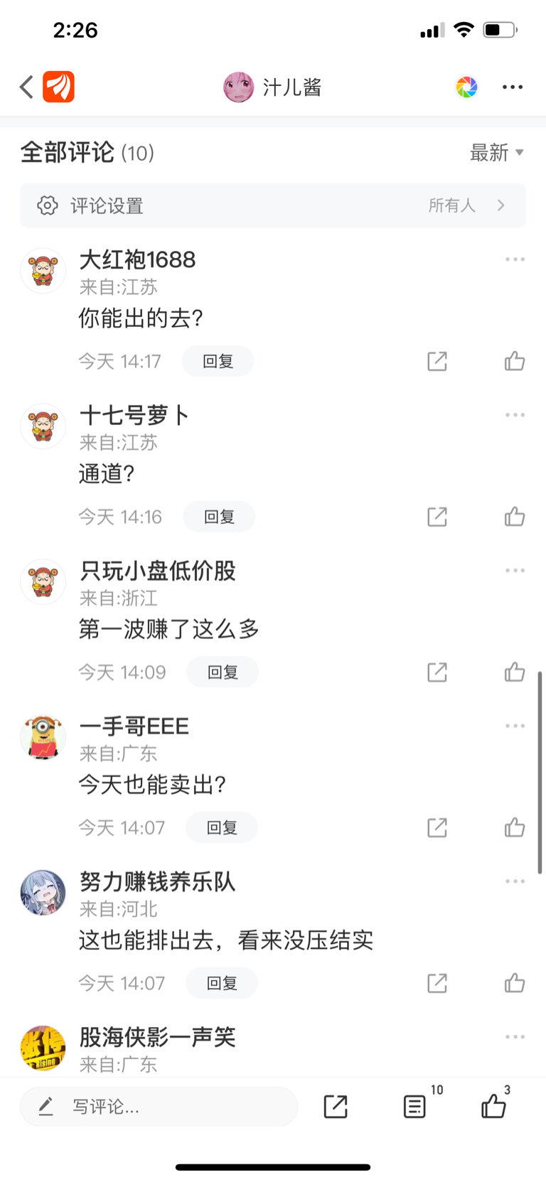 我知道为啥跌了,因为里面无脑的太多了,我今天止损了,居然这么多个留言:居然出的去