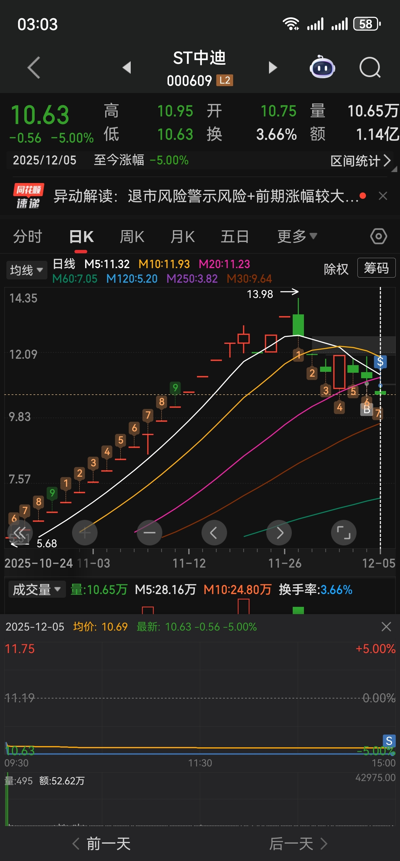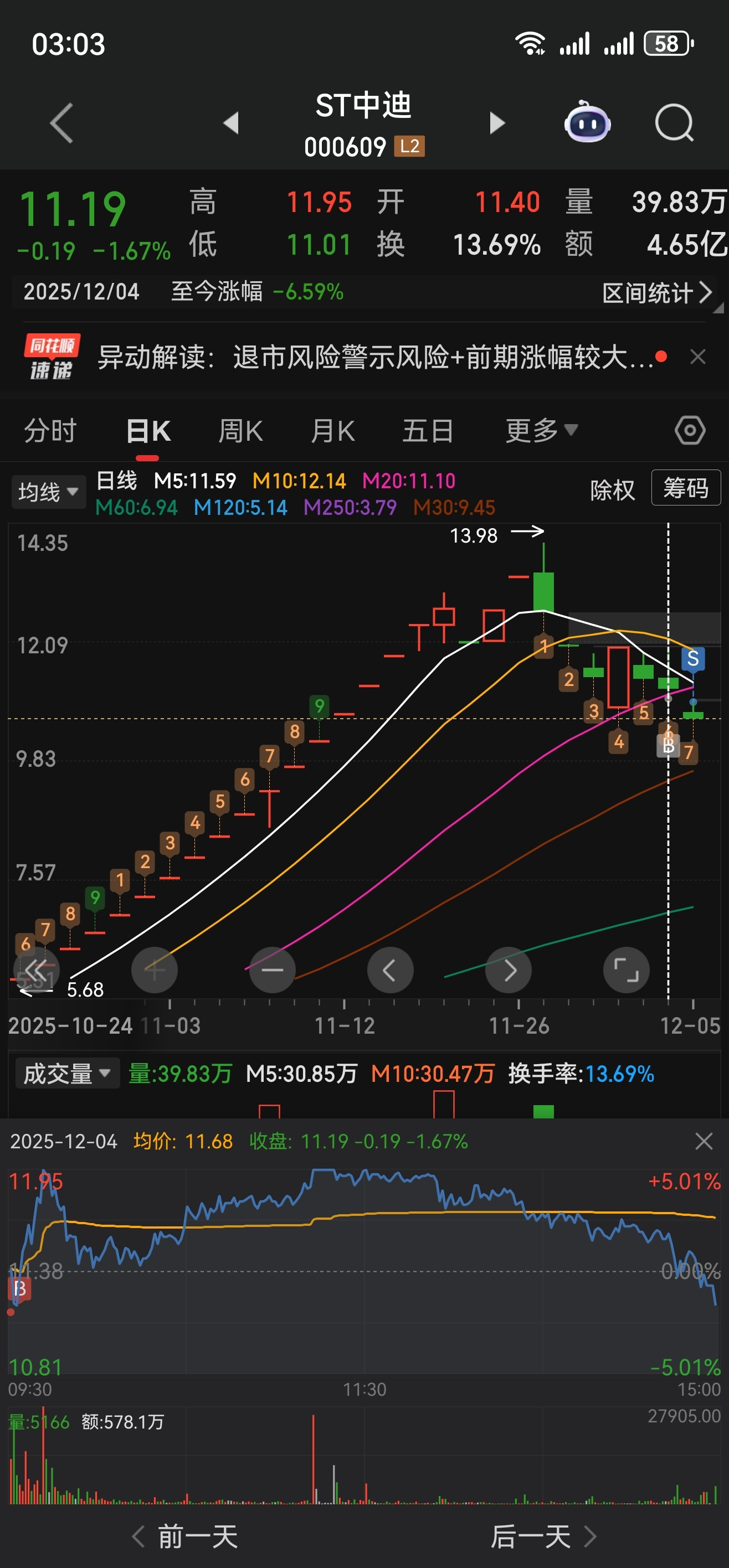 $ST中迪(SZ000609)$ 昨天买入小仓位博弈失败,排了一天尾盘竞价出局,再贱。