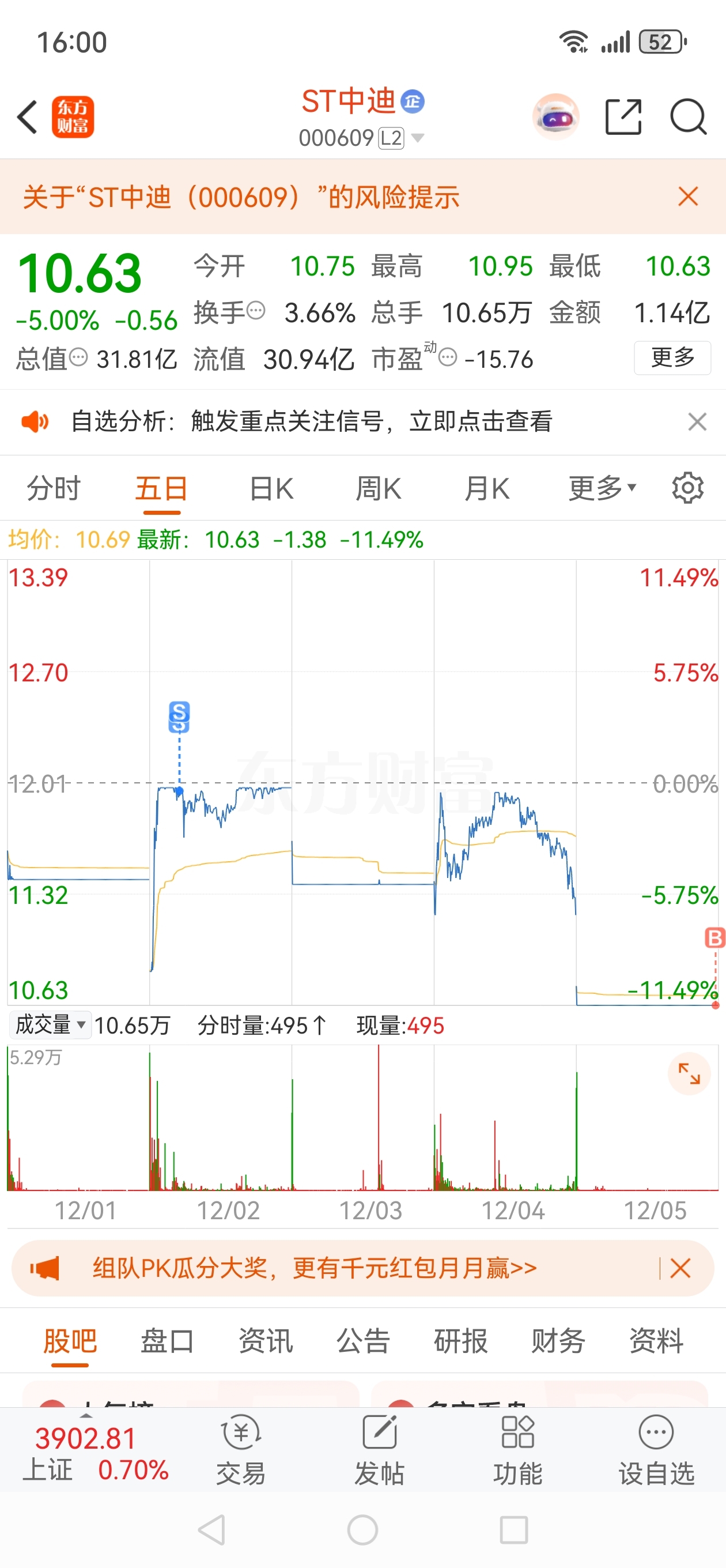 $ST中迪(SZ000609)$ 嘿嘿!兄弟们:我又回来了!
