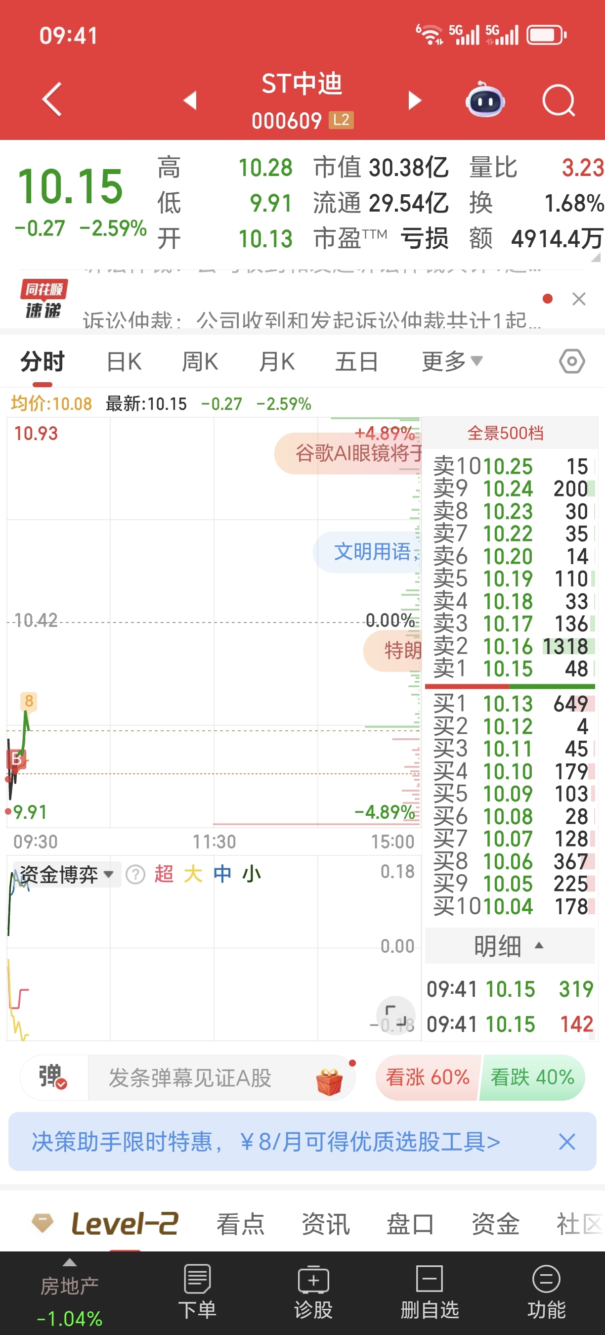 $ST中迪(SZ000609)$ 八倍空间,给回调机会只是个淦淦淦