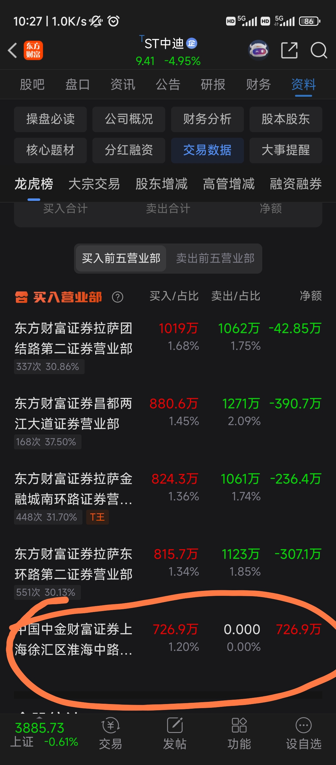 $ST中迪(SZ000609)$ 这个票已经没有量化资金,然后龙虎榜发现昨天拉萨天团5个卖榜,尽是净卖出。