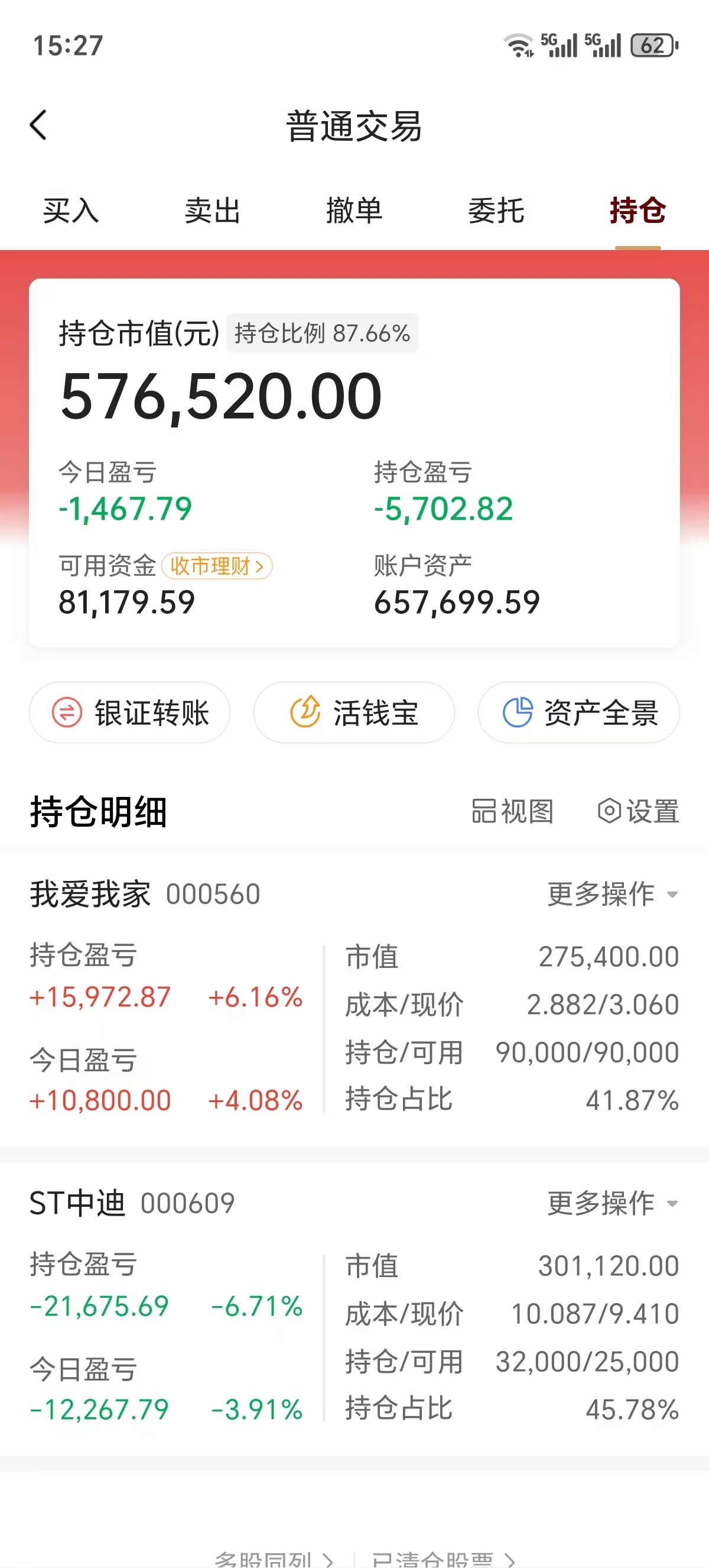 $ST中迪(SZ000609)$ 先主动买个套,别人恐惧我贪婪,明天如果涨停9.88很吉利的数字,跌停继续补仓