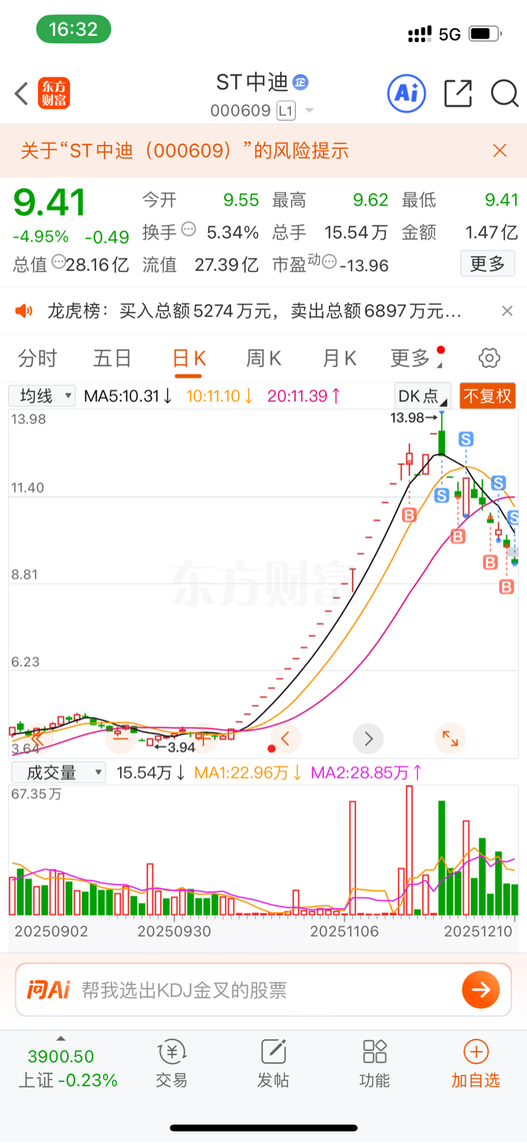 $ST中迪(SZ000609)$ 终于死心了,明天送外卖去了……