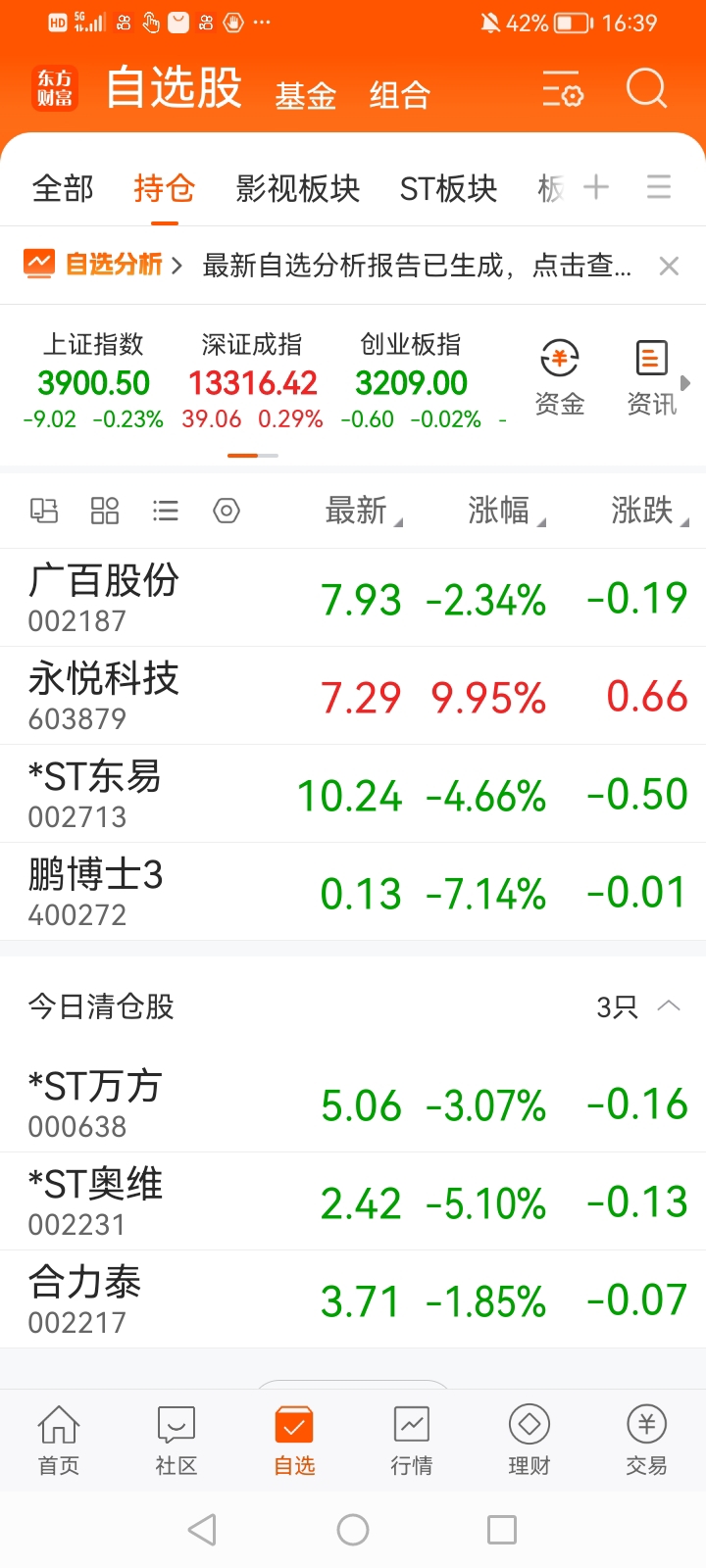 $ST中迪(SZ000609)$ $*ST东易(SZ002713)$ $*ST正平(SH603843)$ 重生之我在ST东易躲牛市,自选里面十几支消费股都涨停了没有买,在东易待了二十多天亏了二十五个点!明天东易再跌我就割肉清仓了!去商业百货板块随便买个股都能赚钱,在东易每天都是自动扣费收不鸟了!!!
