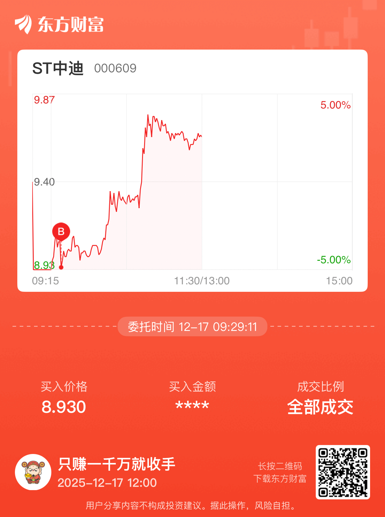 温馨提示: 1.根据《证券法》规定,禁止编造、传播虚假信息或者误导性信息,扰乱证券市场;2.用户在本社区发表的所有资料、言论等仅代表个人观点,与本网站立场无关,不对您构成任何投资建议。用户应基于自己的独立判断,自行决定证券投资并承担相应风险。《东方财富社区管理规定》