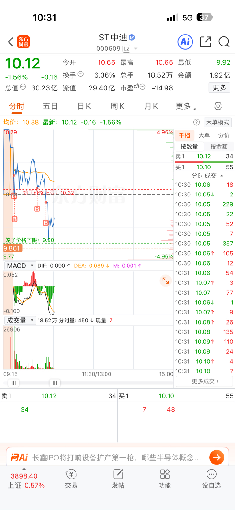 $ST中迪(SZ000609)$ 以为抄到低了 没想到原来是抄家