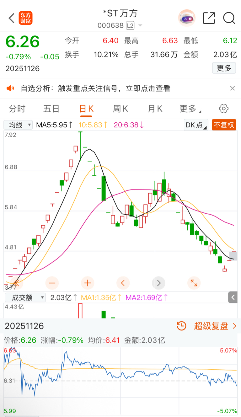 $ST中迪(SZ000609)$ 不会和万方一个熊样吧,双底反弹然后一路阴跌?