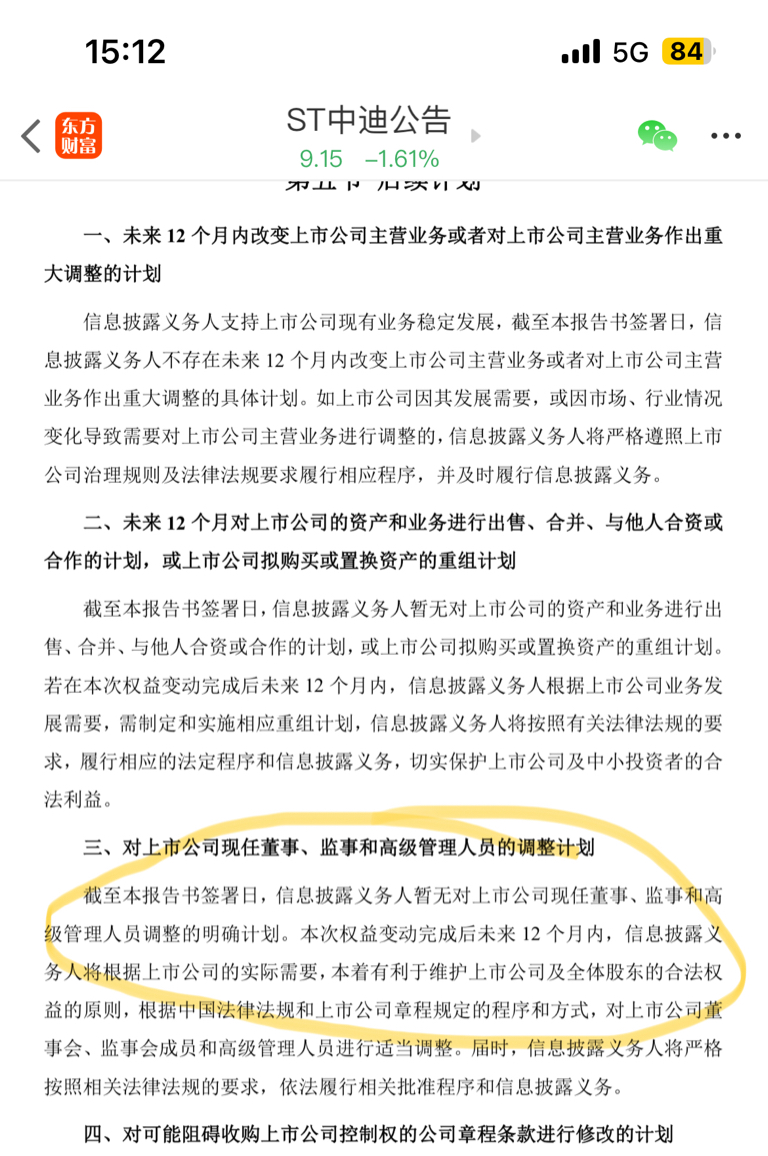 $ST中迪(SZ000609)$ 从详实收购报告书,寻找董事会变更端倪