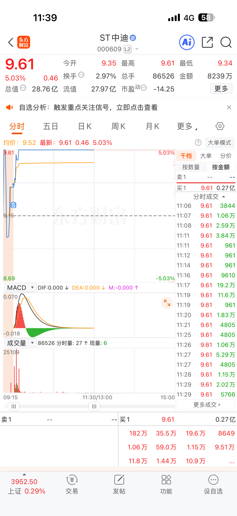 $ST中迪(SZ000609)$ 守了一个礼拜 在你这挣不了钱那就拜拜 不可惜不心疼