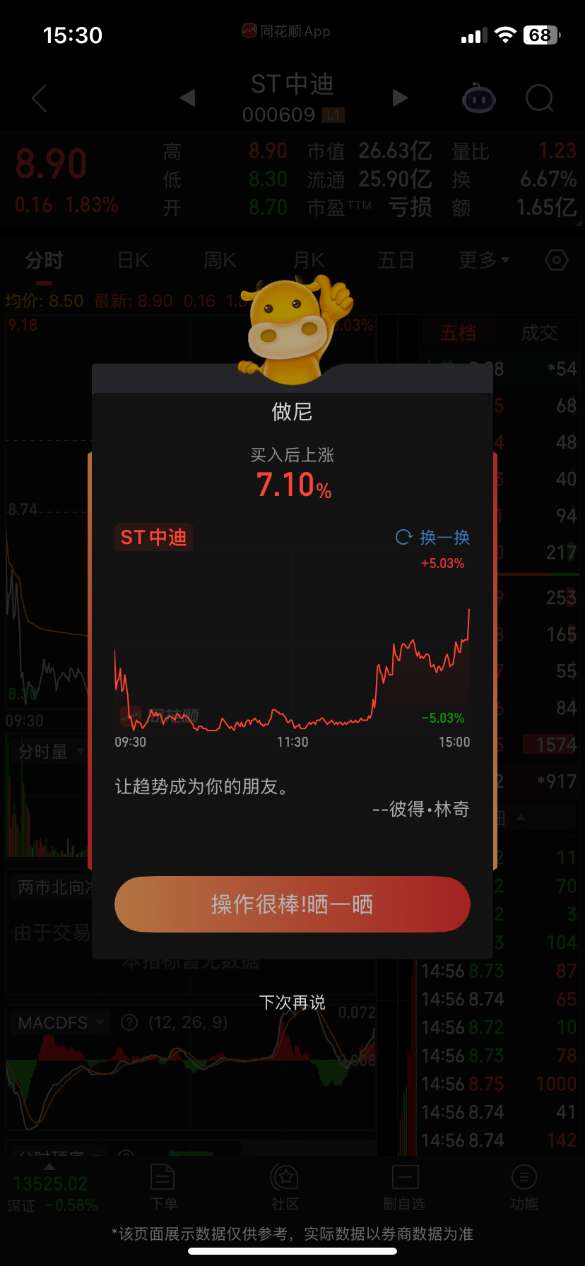$ST中迪(SZ000609)$ 早上买了点就没有看了,本来想买点底仓的,尾盘发生了什么?