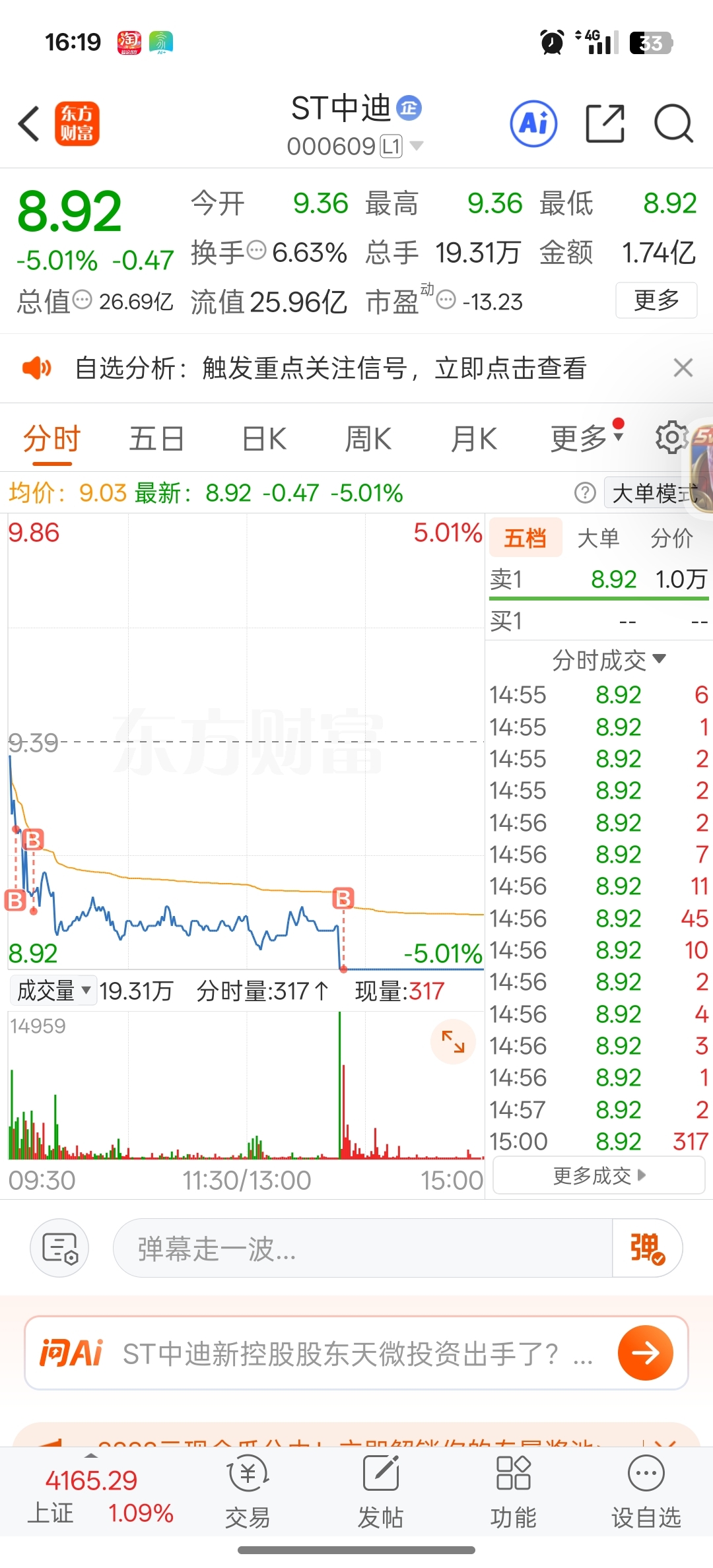 $ST中迪(SZ000609)$ 周五板上跑了,今天冲动又被套一个多点。明天还能B吗