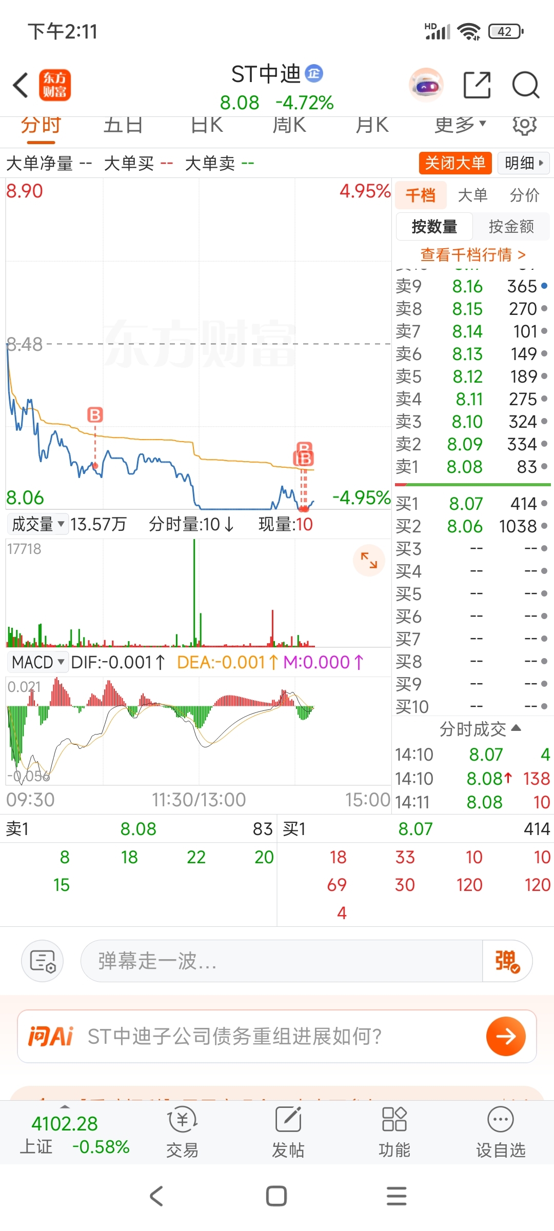 $ST中迪(SZ000609)$ 跌停位置又搞钱加仓了,8.06的芯片股真忍不住不下手啊