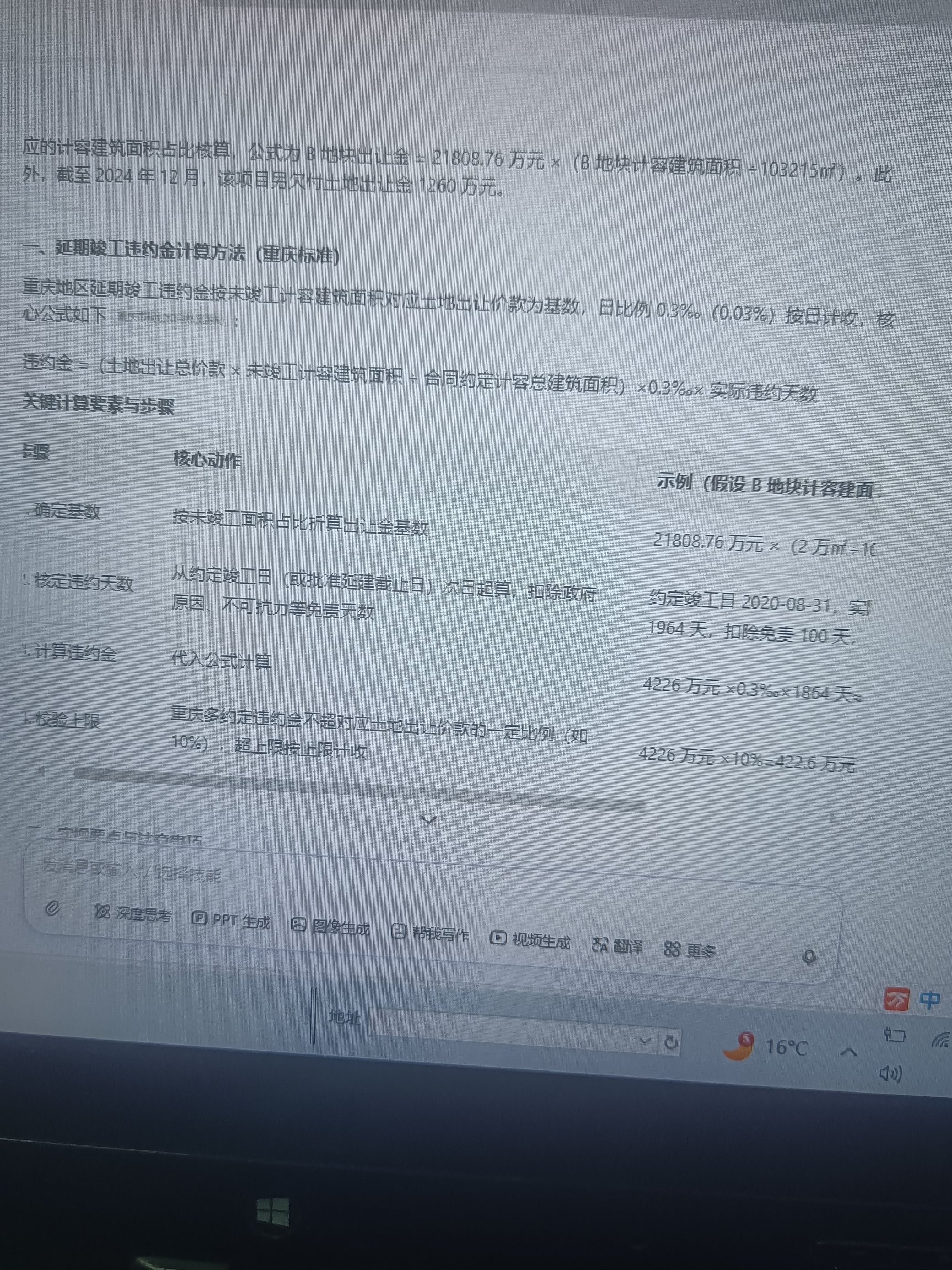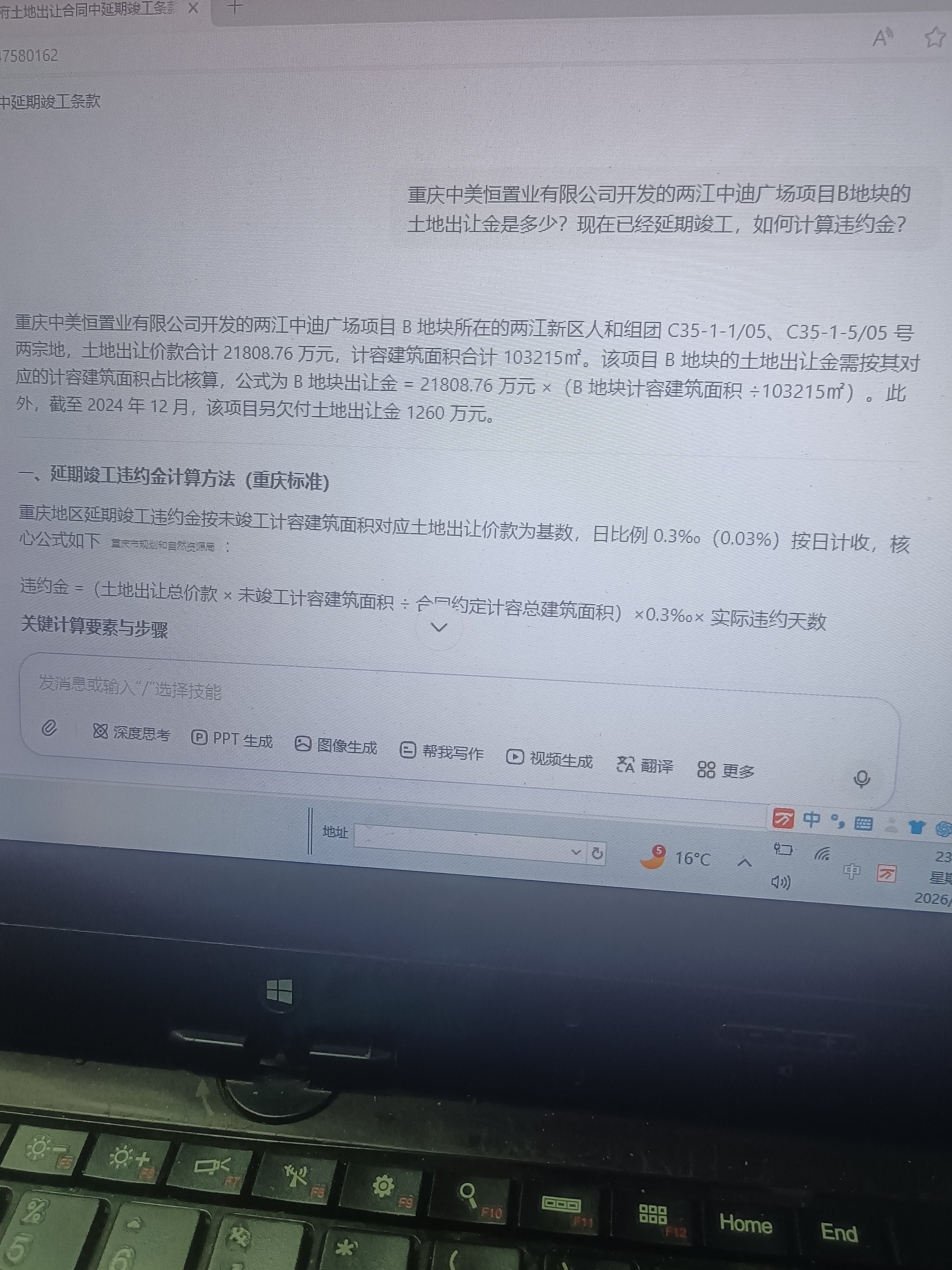 1、已经查了一下,不管按照哪一个重庆的标准,重庆中美恒置业有限公司B地块,土地出让金21808.76万元,延期竣工的违约金不会超过500万元,实际违约1864天,你们自己去查,看下面图片