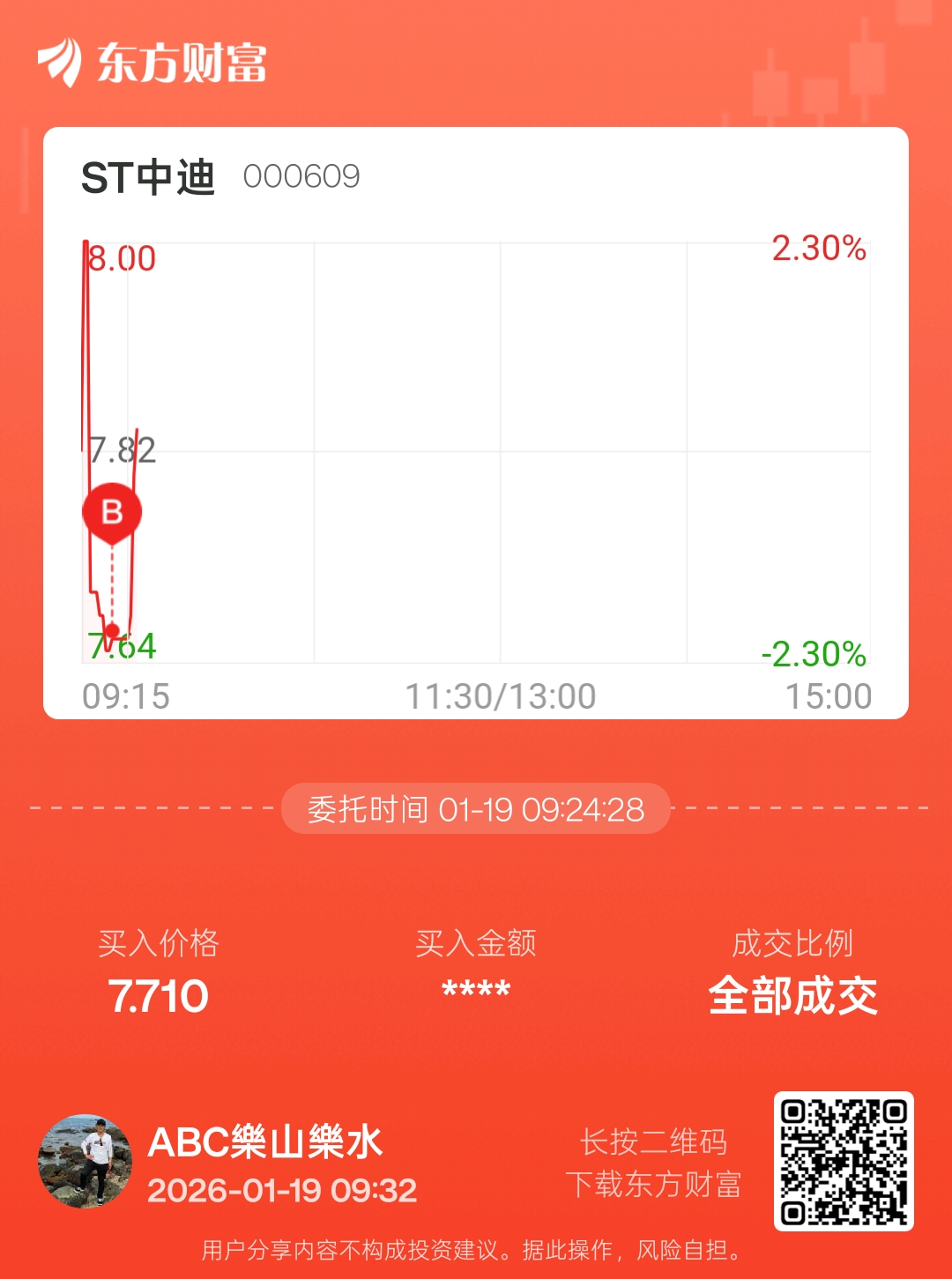 温馨提示: 1.根据《证券法》规定,禁止编造、传播虚假信息或者误导性信息,扰乱证券市场;2.用户在本社区发表的所有资料、言论等仅代表个人观点,与本网站立场无关,不对您构成任何投资建议。用户应基于自己的独立判断,自行决定证券投资并承担相应风险。《东方财富社区管理规定》