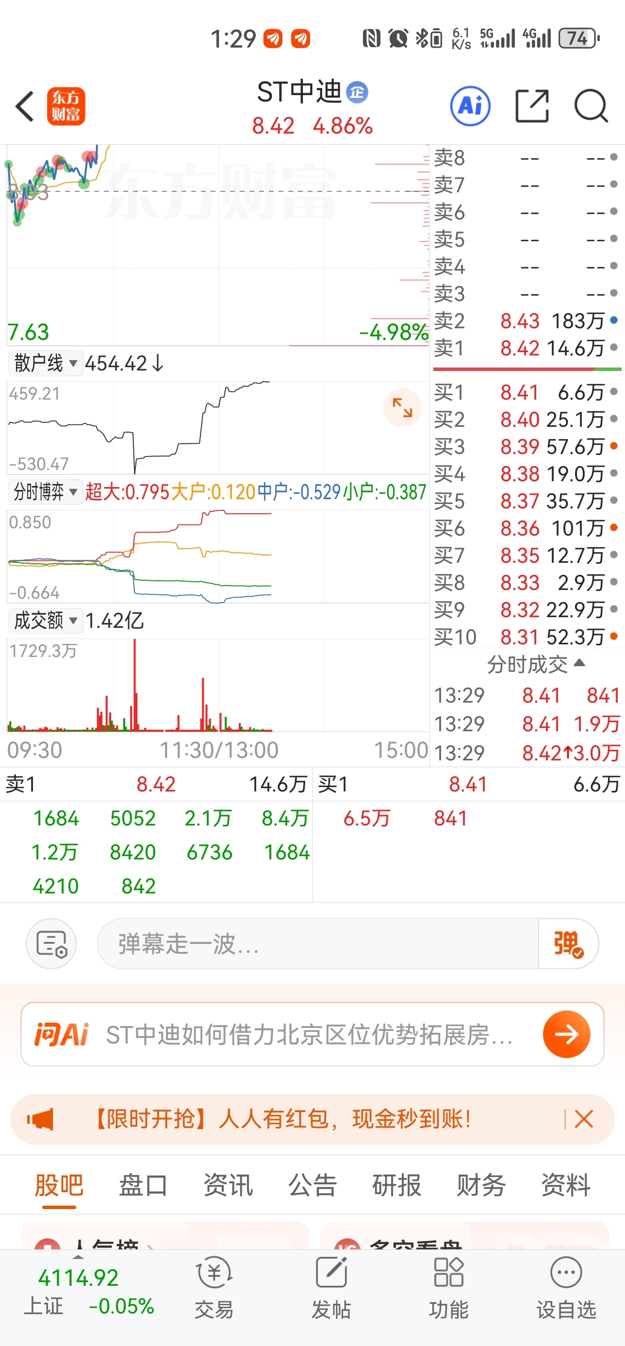 $ST中迪(SZ000609)$ 报告主力炸板后没人买了,可以封板了。