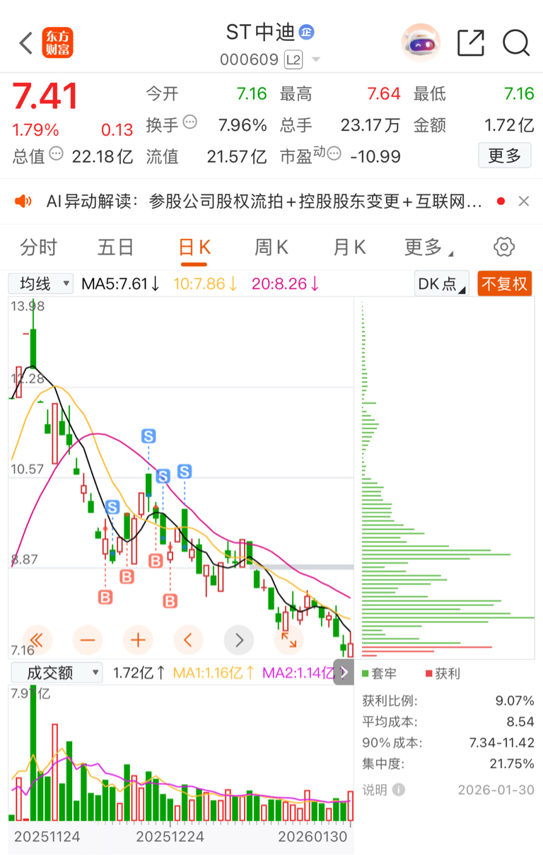 $ST中迪(SZ000609)$ 5日线都站不上,这是要奔破7去了吗?上面全是套牢盘这让人咋玩啊
