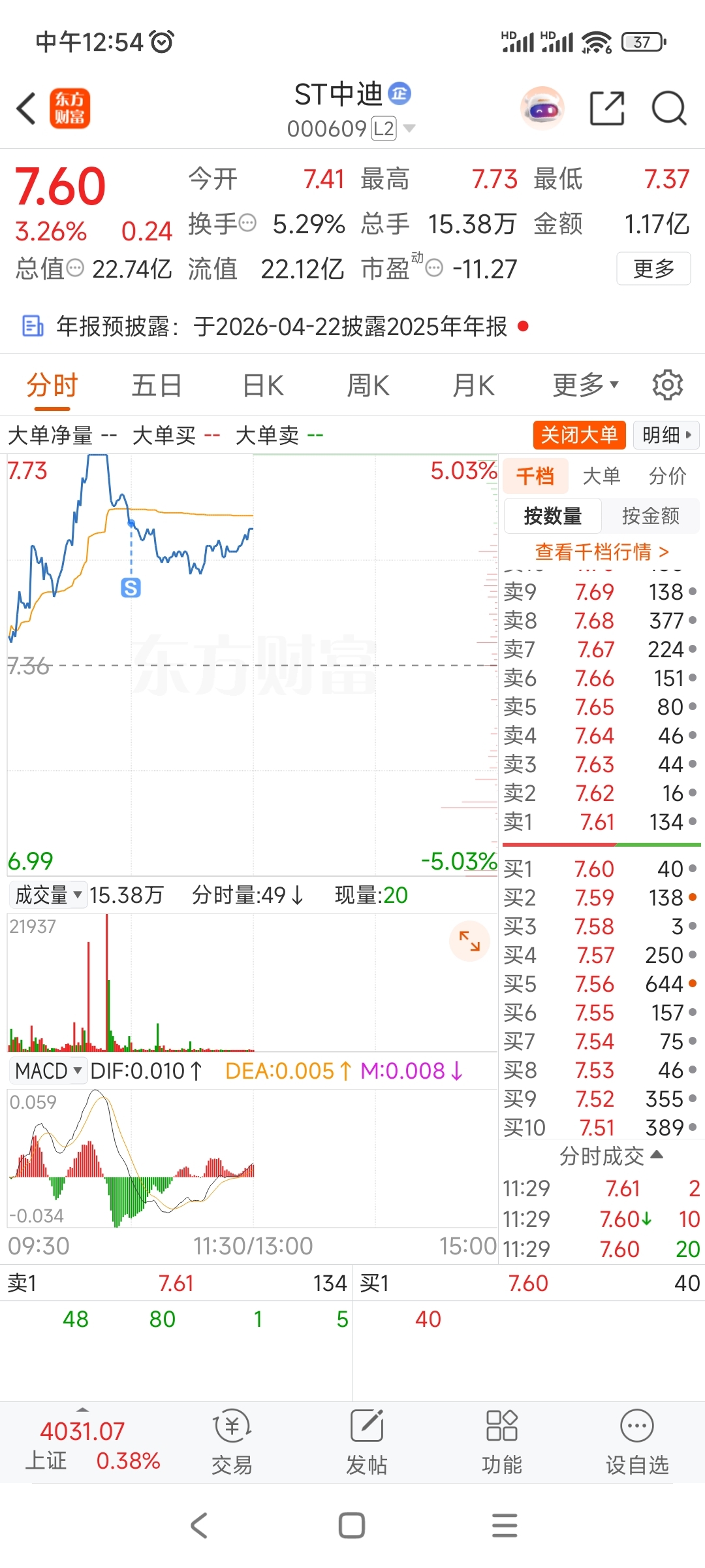 $ST中迪(SZ000609)$ 为防止继续下跌,出了200股,这样为了甩我下车它就不会再下跌了。我用踏空200股的损失挽救中迪于水火之中,舍己为人,切身取义!我是不是很伟大?