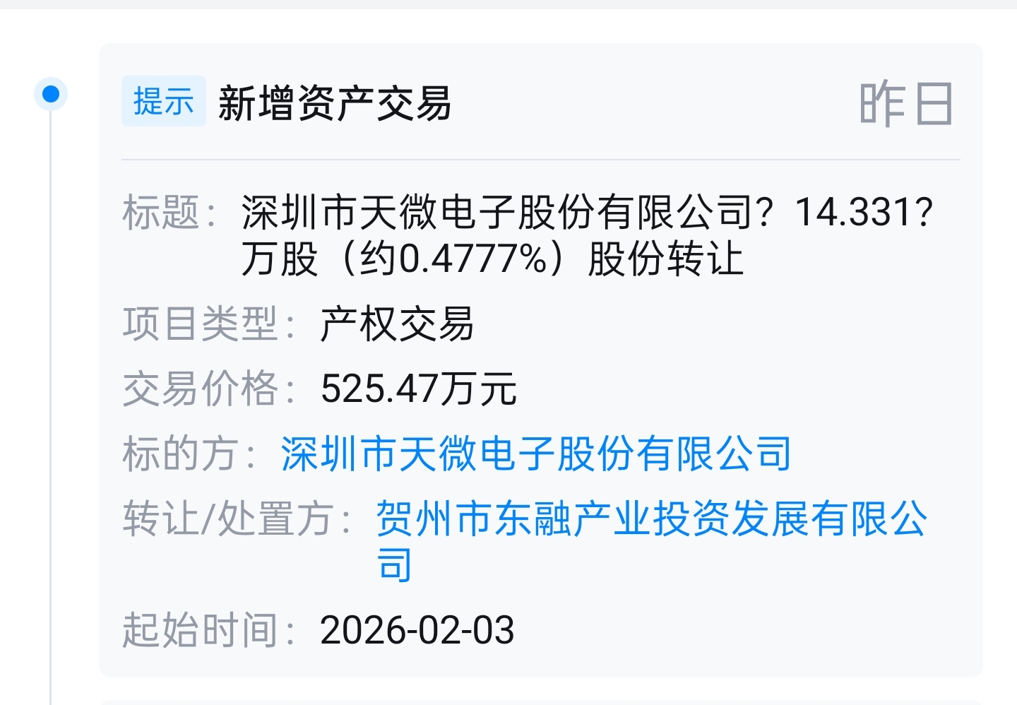 不出意外应该是把广西天微装进中迪了,广西贺州国资也进来了,按照14.3万股525