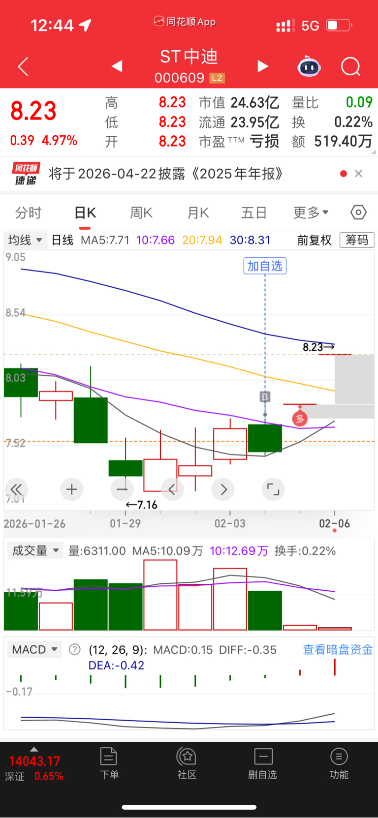 $ST中迪(SZ000609)$ 妹的,就建了个底仓想着它还能磨一段时间呢。