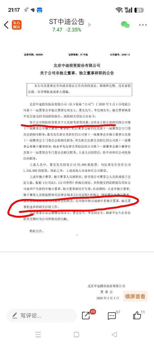 $ST中迪(SZ000609)$  大家说周日会出改选董事会的公告吗?