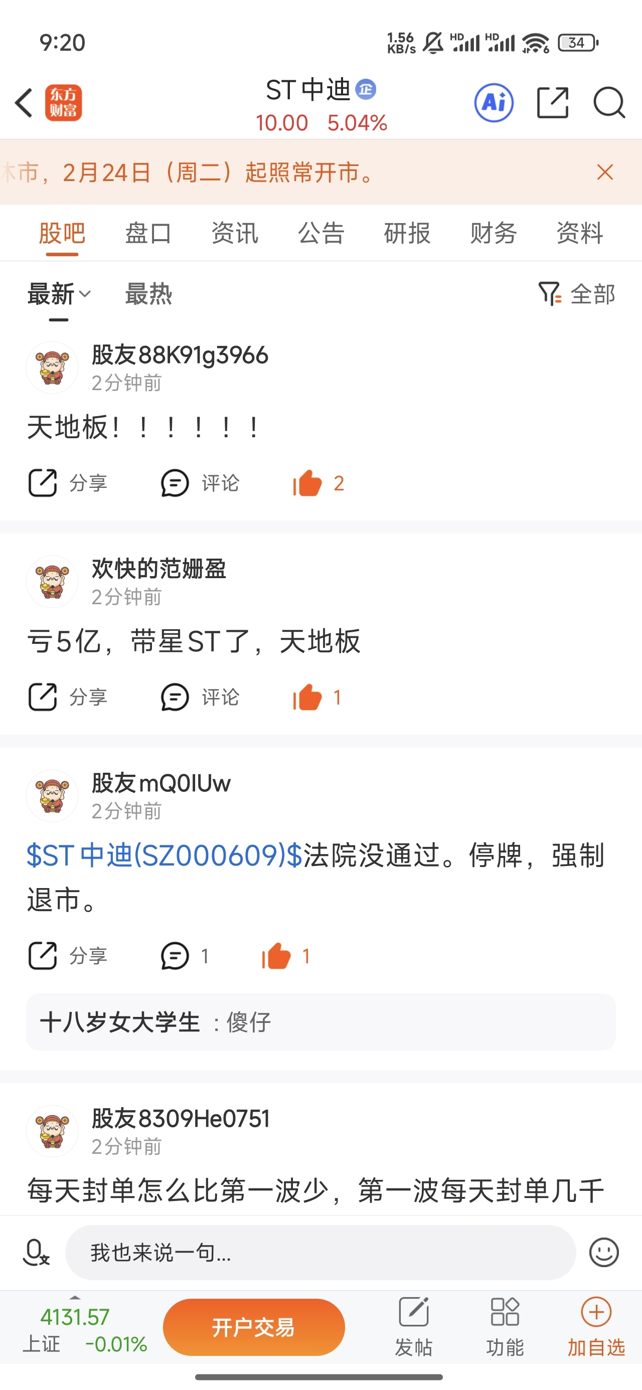 温馨提示: 1.根据《证券法》规定,禁止编造、传播虚假信息或者误导性信息,扰乱证券市场;2.用户在本社区发表的所有资料、言论等仅代表个人观点,与本网站立场无关,不对您构成任何投资建议。用户应基于自己的独立判断,自行决定证券投资并承担相应风险。《东方财富社区管理规定》