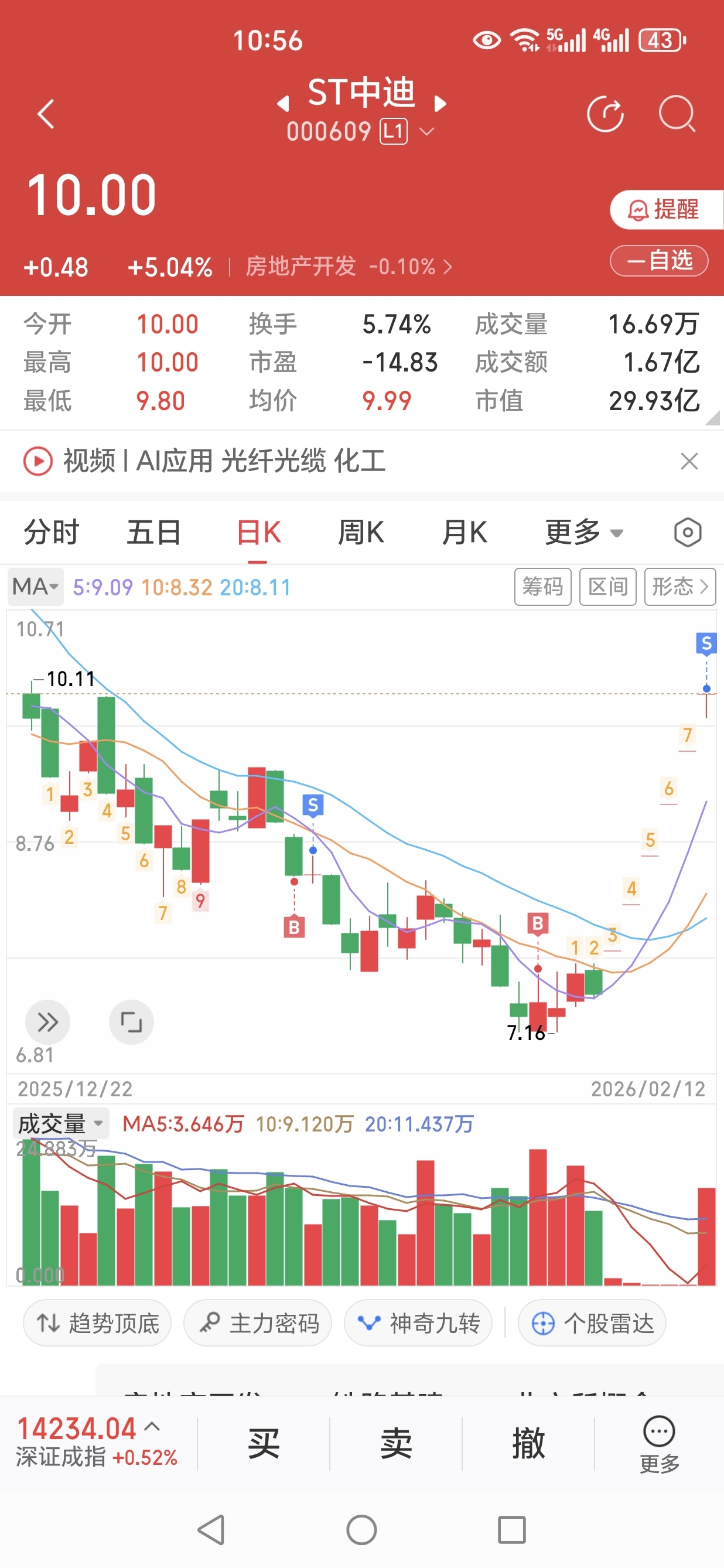 $ST中迪(SZ000609)$ 早上走了感谢迪王