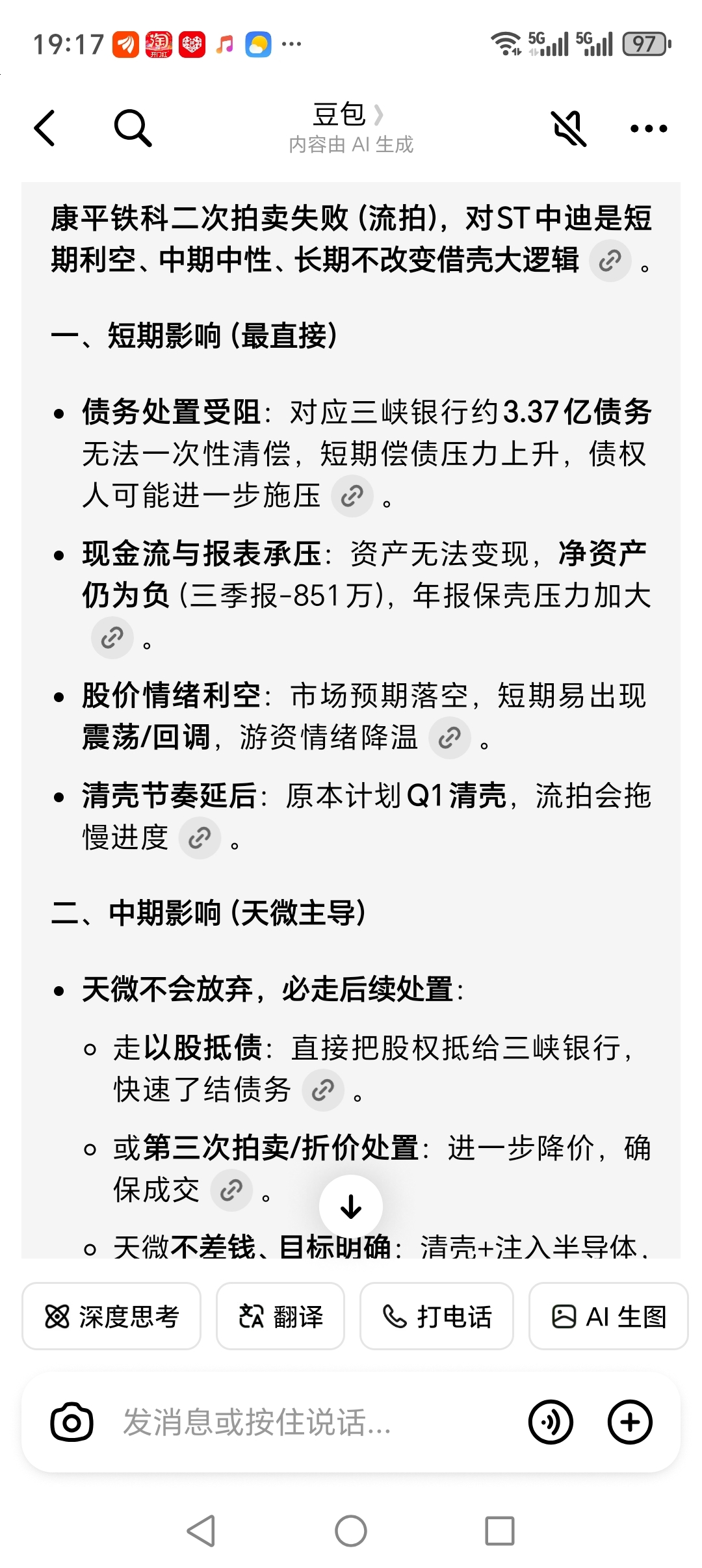 $ST中迪(SZ000609)$ 韭菜担心康平铁科二次拍卖,是不急太*急!
